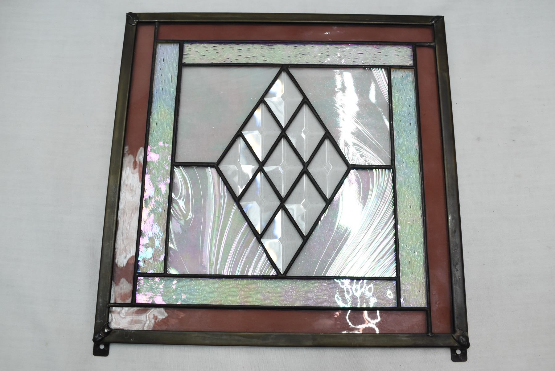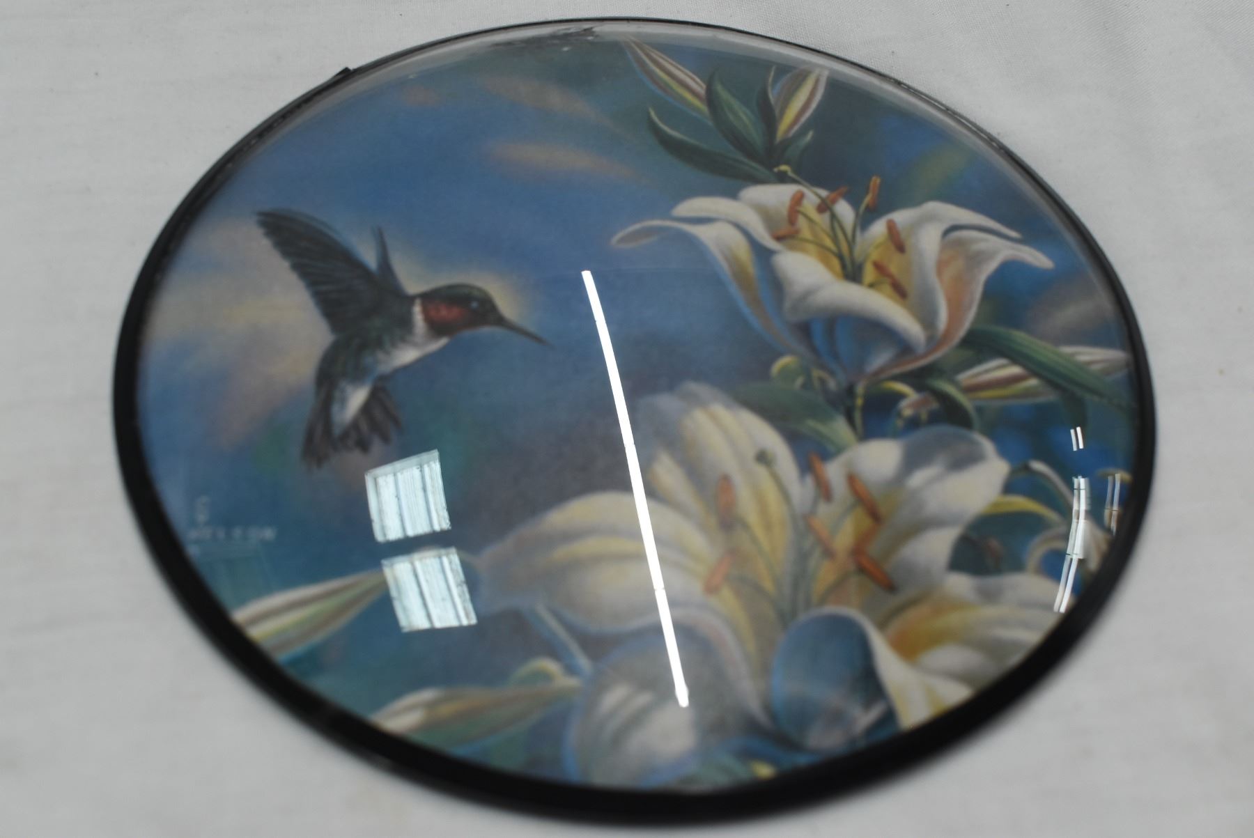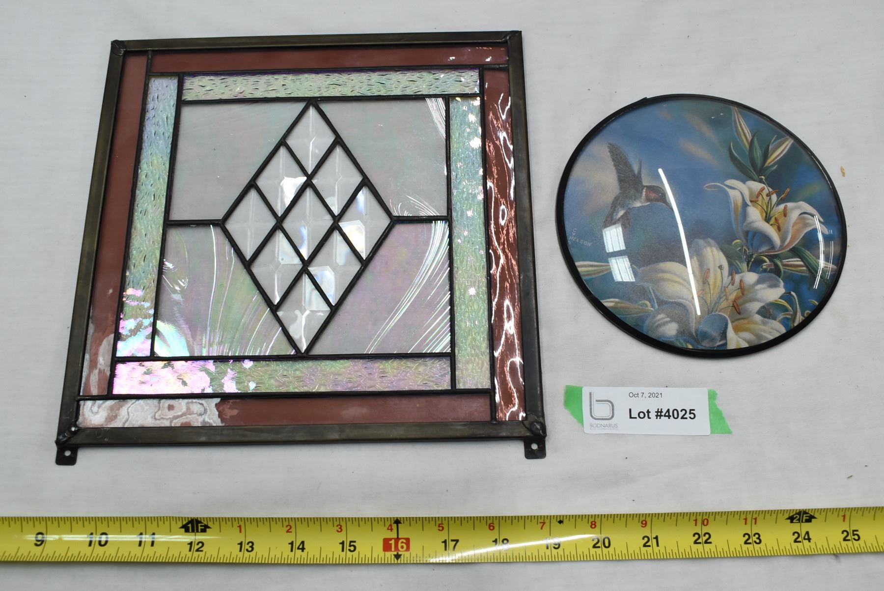 Vintage Stained glass in metal frame with hummingbird picture in round frame