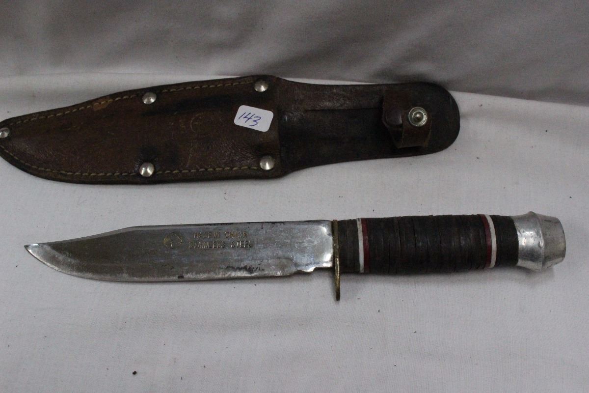 Vintage Stainless Steel Hunting Knife with Original Sheath