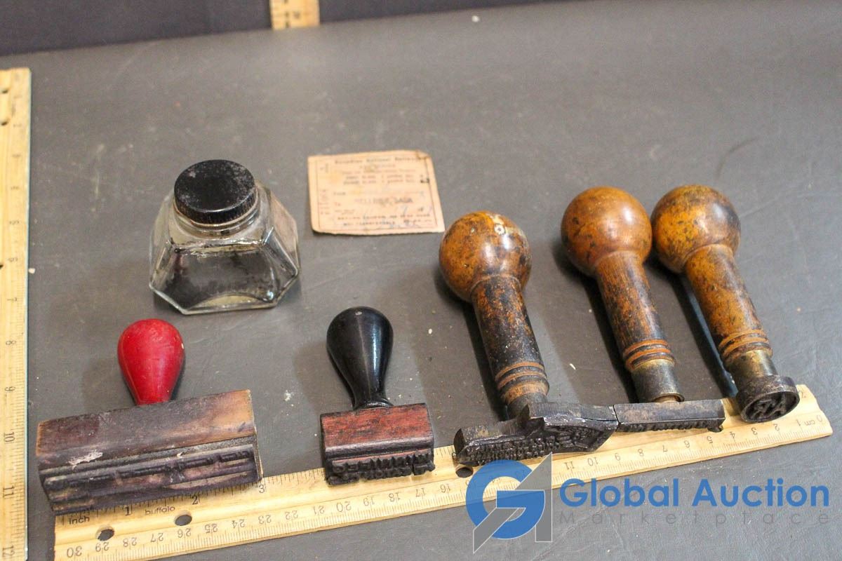 Vintage Stamps (5) and Ink Well - Not Called For, AR, etc.