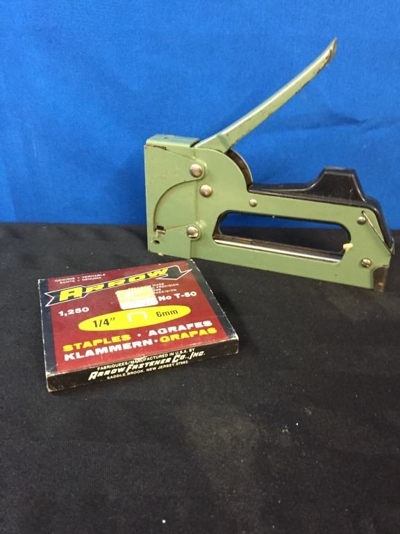 Vintage Staple-Gun & Staples; Arrow Fastener Co Inc, Model T-55, in working condition, plus part box of staples.