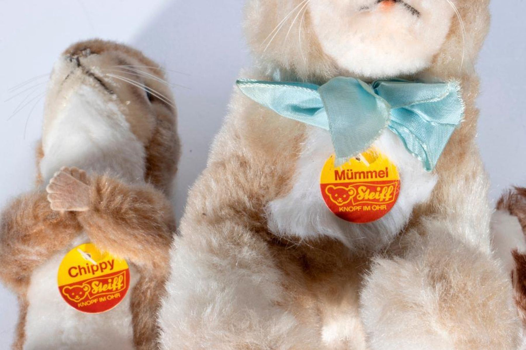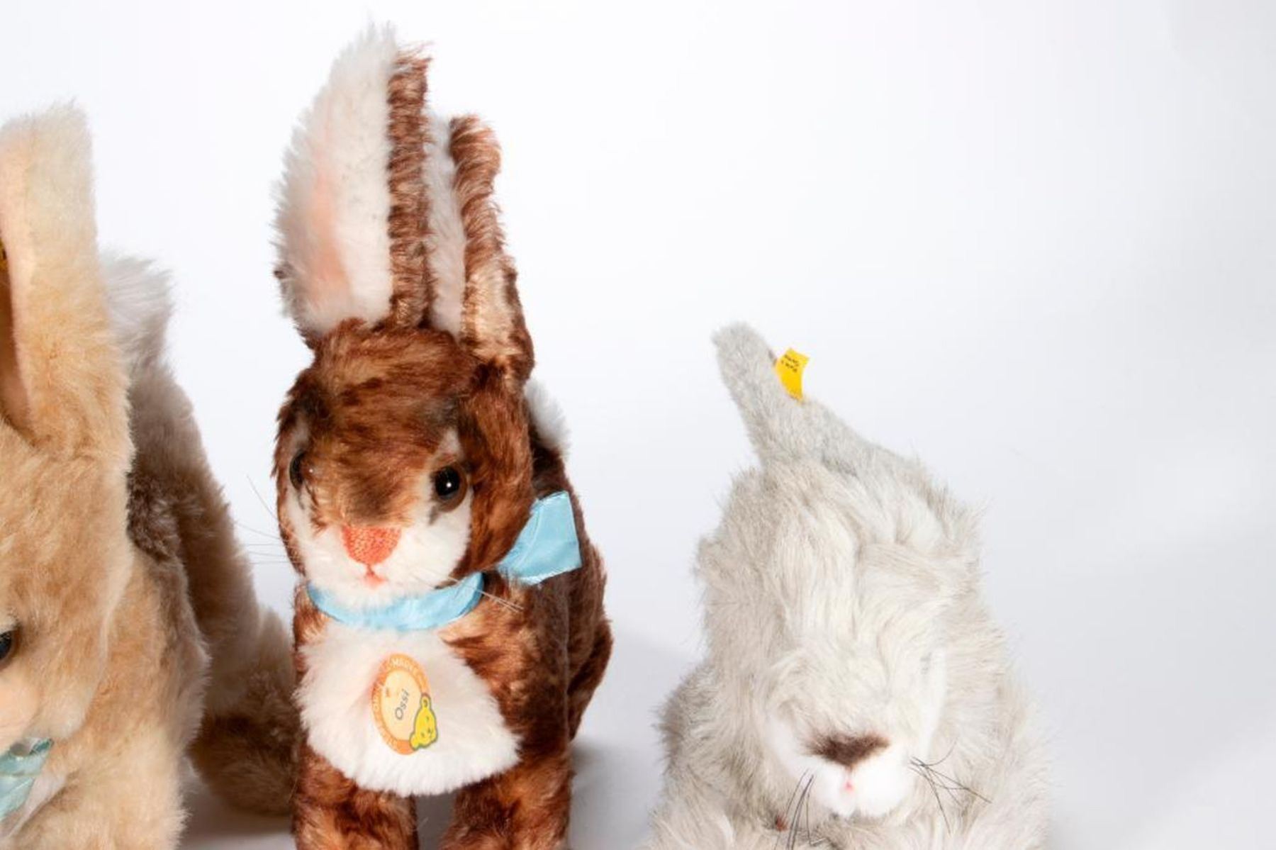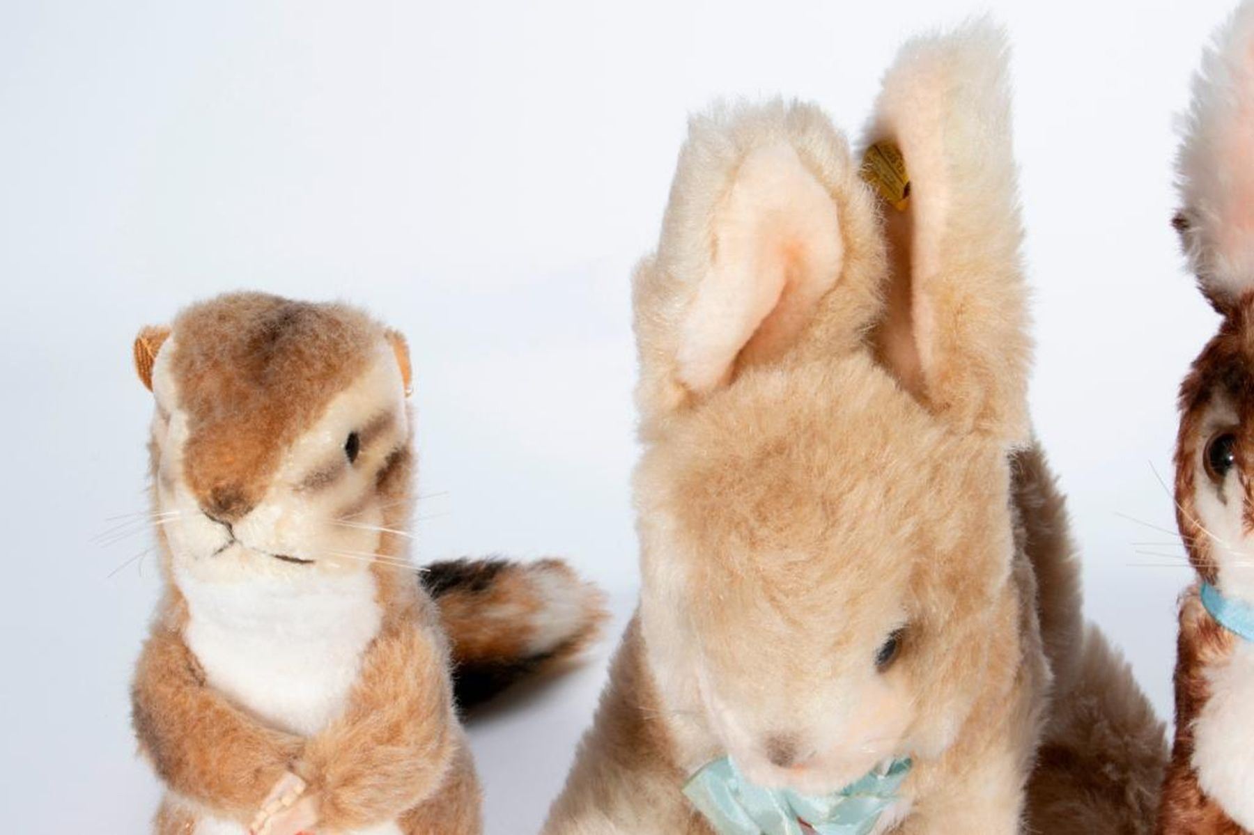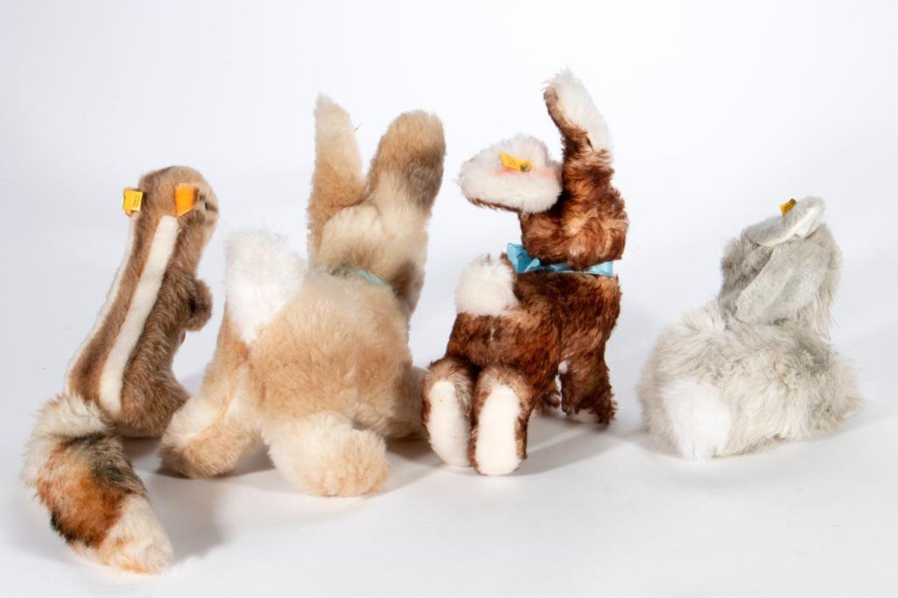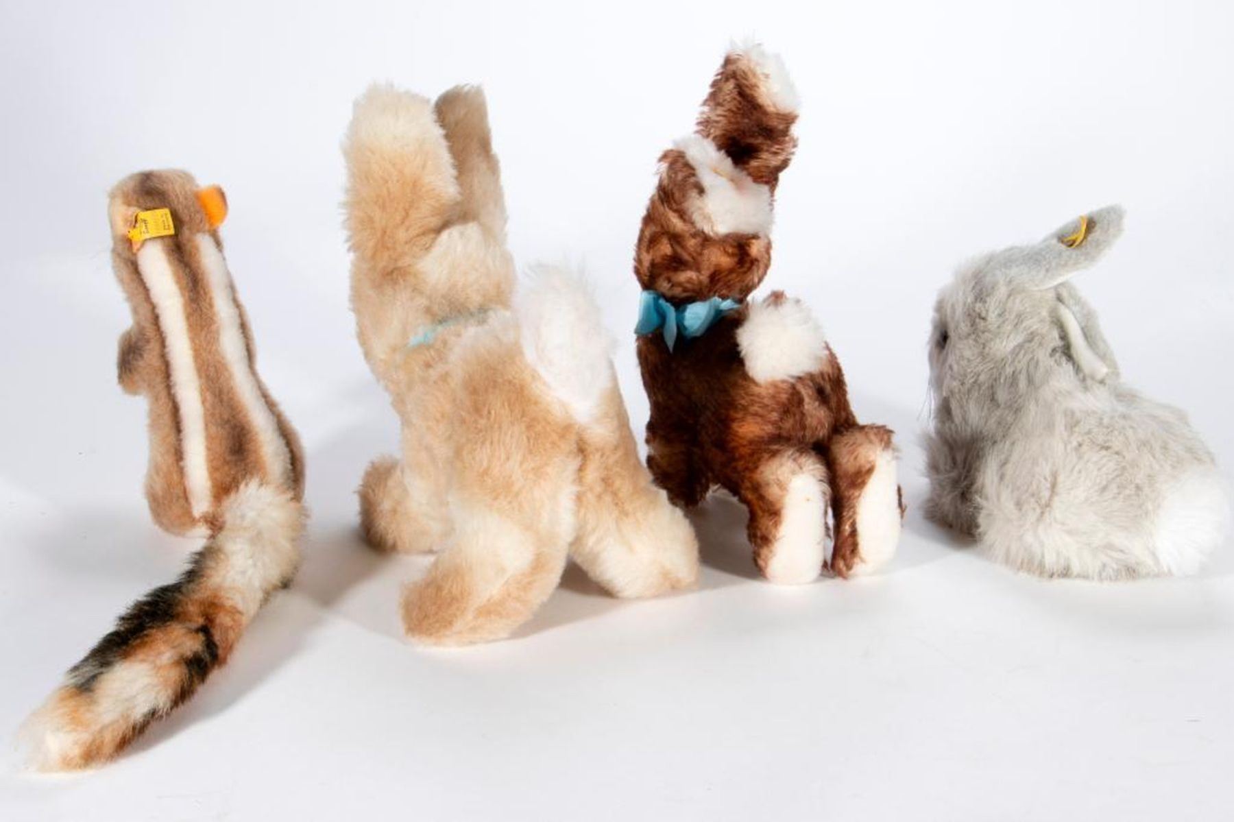 A group of Steiff, all having original tag and button, 1960's-1980's. Chippy squirrel, Ossi rabbit, Winnie rabbit, and Mummel rabbit. Largest measuring 11 inches high. In very good vintage condition.