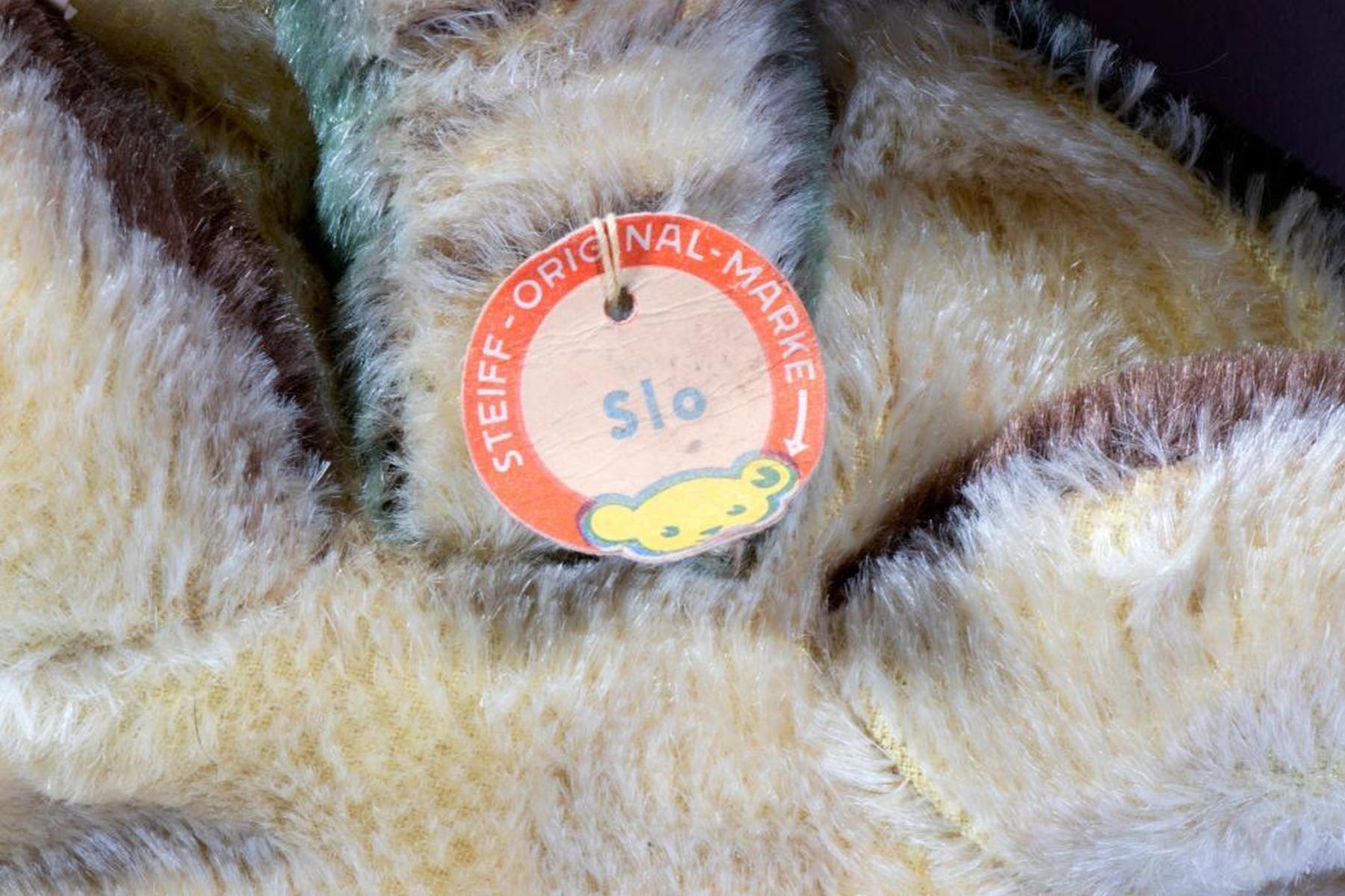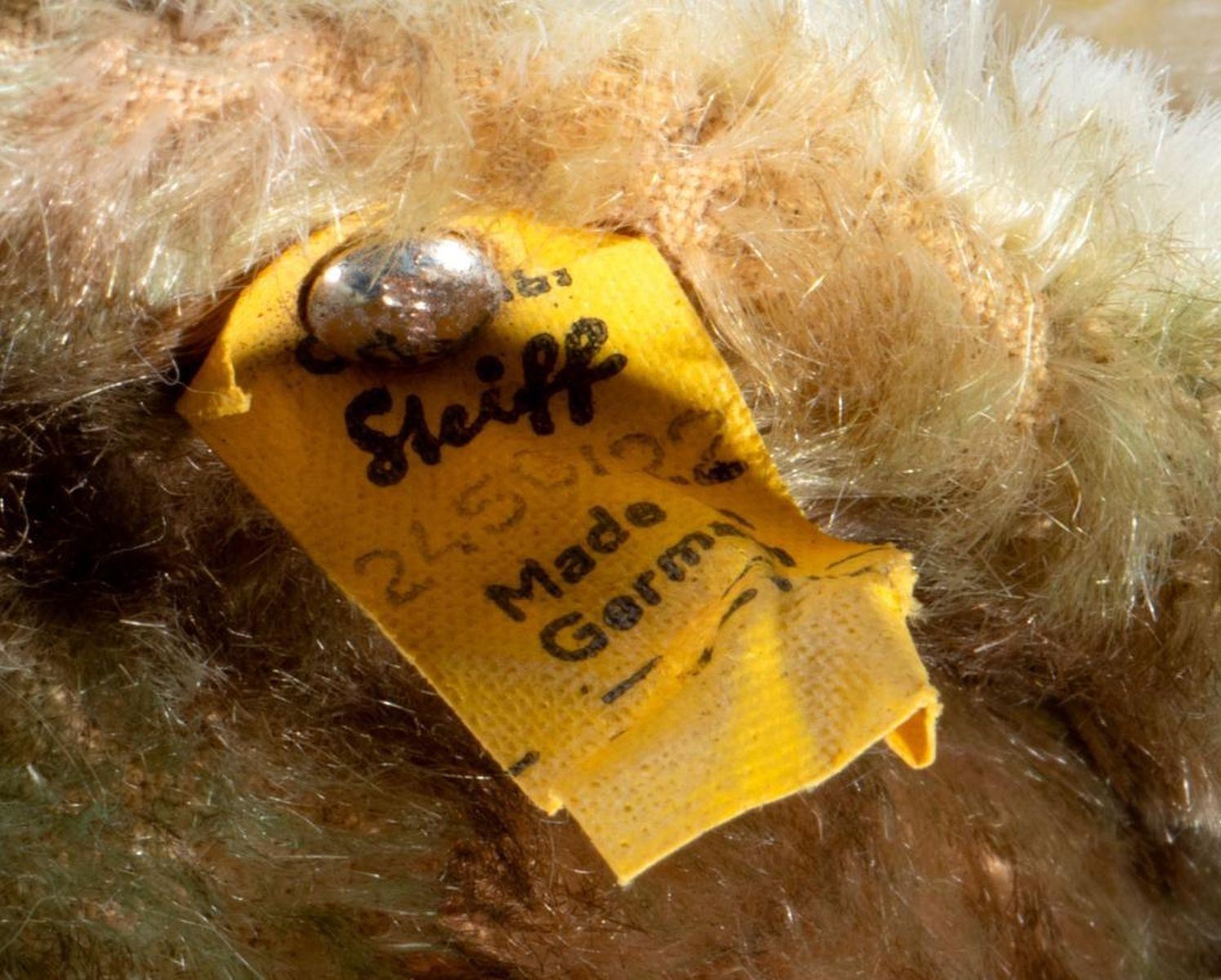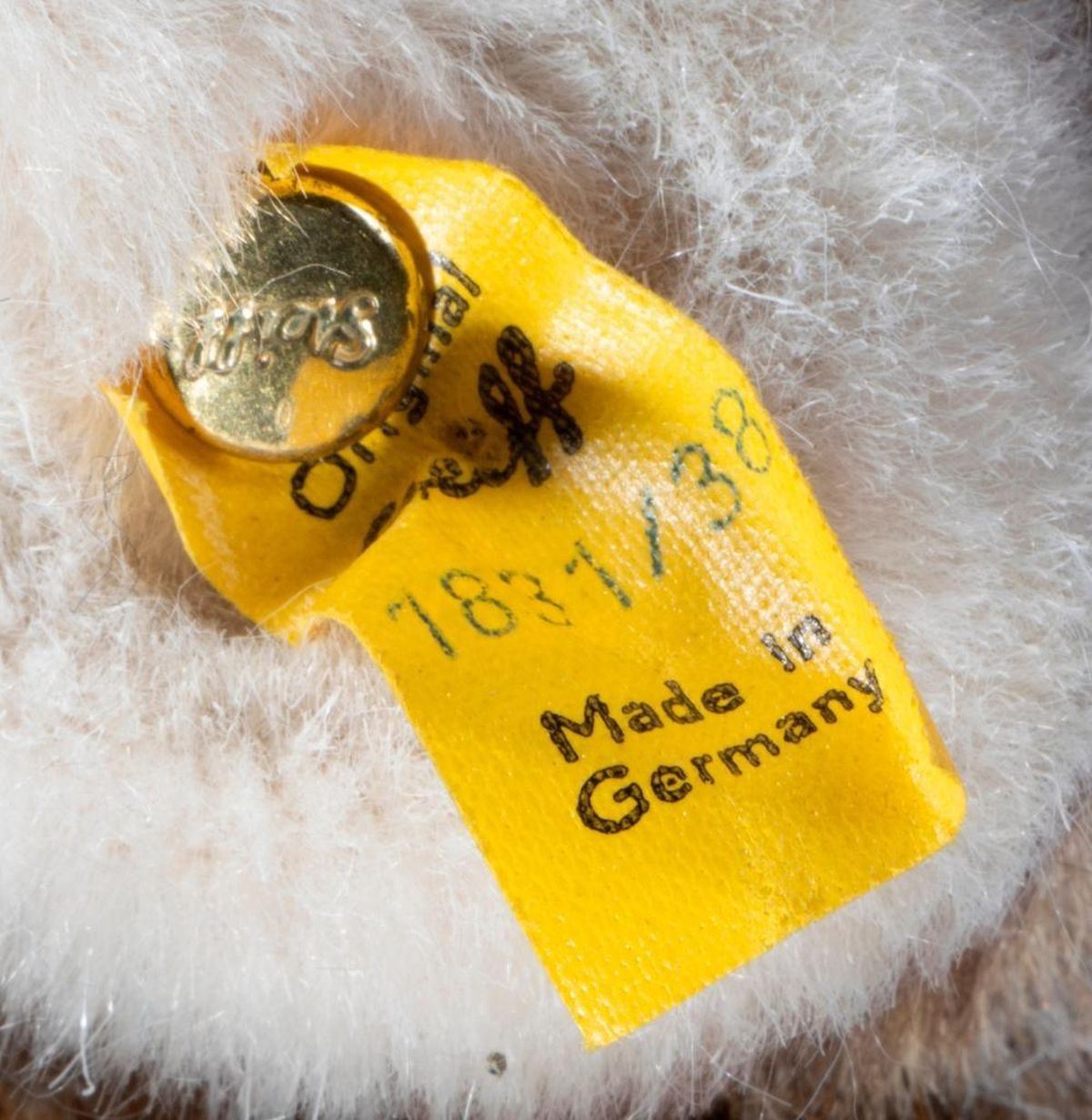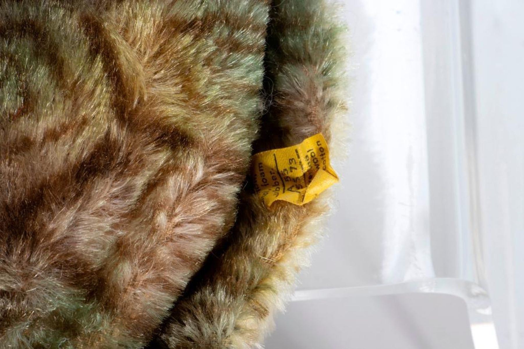 Three large vintage mohair Steiff 1960's-1970's, consisting of Lora parrot, Slo turtle and Lorli Deer. Plus one vintage giraffe with a tag reading Aux Nations Made in France. The largest measurement 18 inches