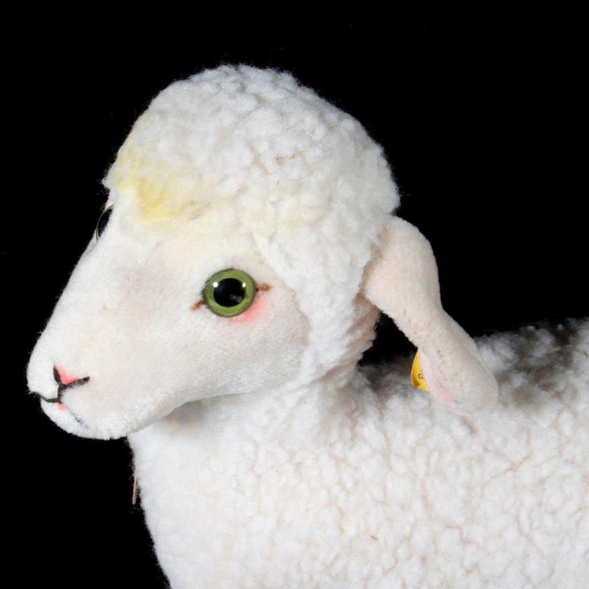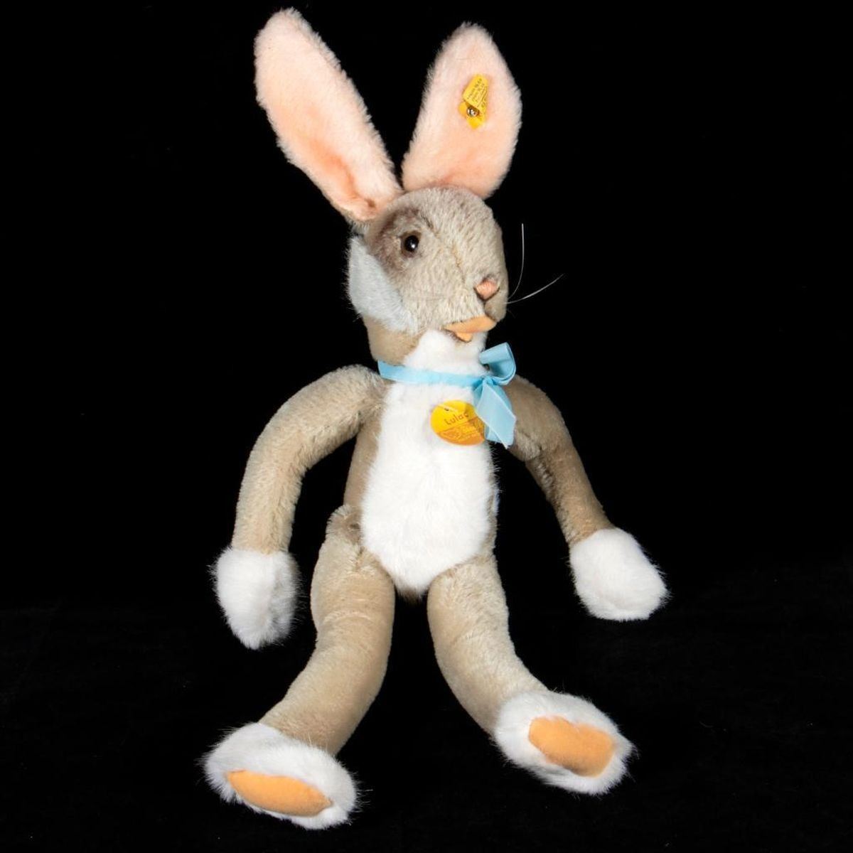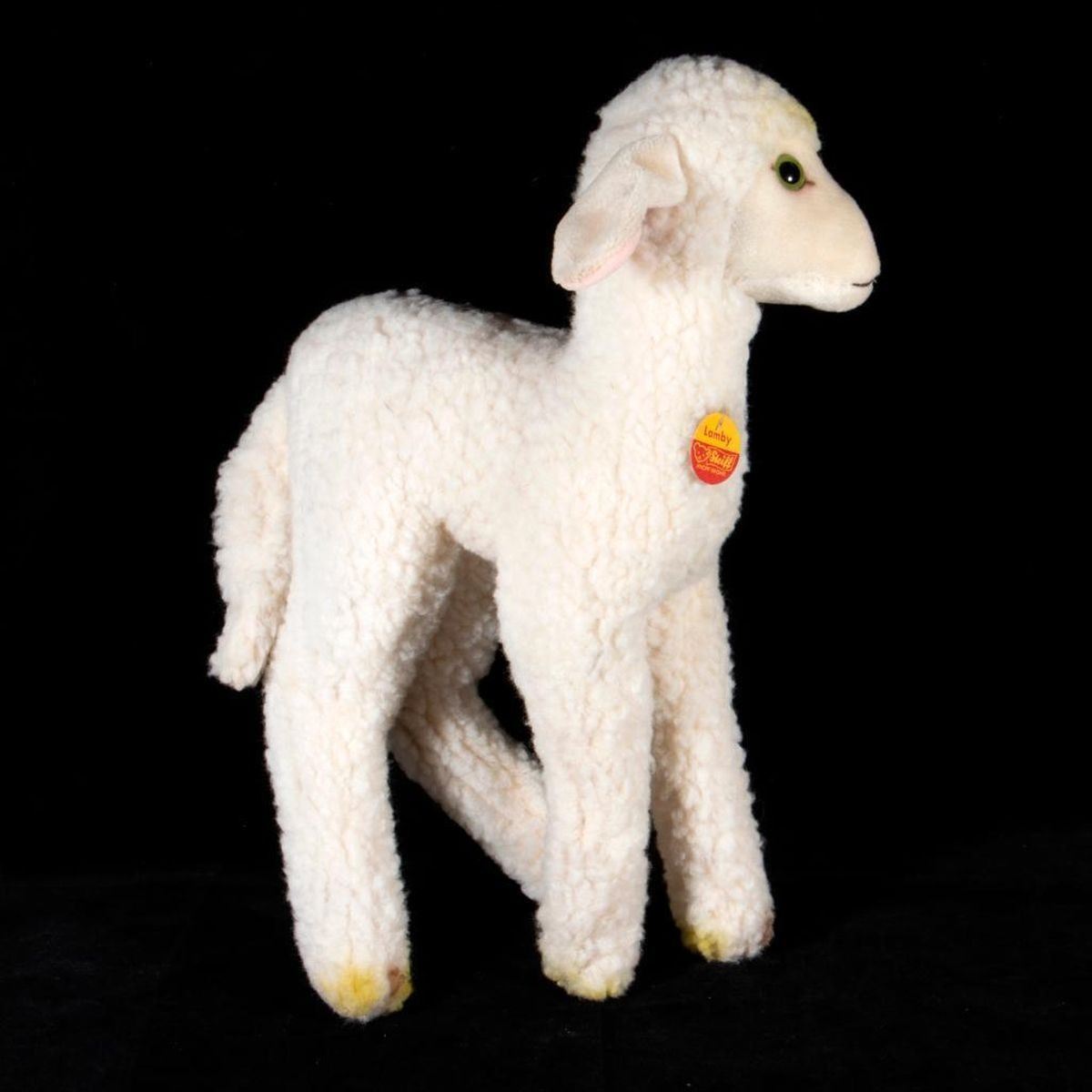 Larger vintage Steiff, Lulac Rabbit and Lamby Lamb, both retain original tag and button. Measurement at largest 18 inches.
