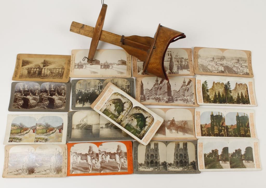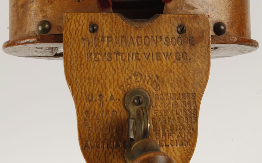 Marked " The Paragon Scope Keystone View Co". Last patent date 1895. Comes with 24 Stereo cards of world travel from 1898 to 1904.