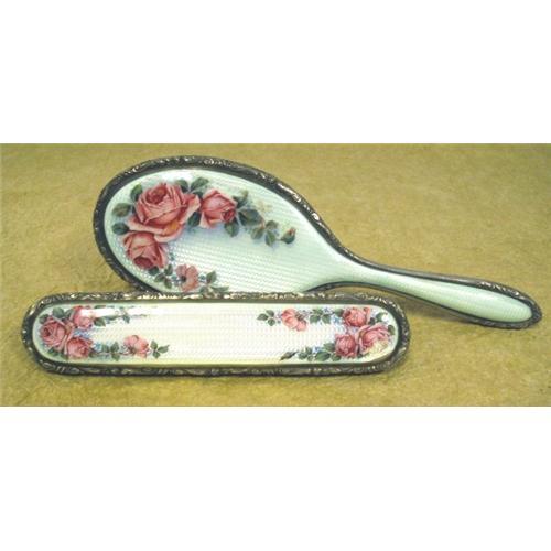 <tr><td>Title:Vintage Sterling Enamel Roses Brush & Comb Set</td></tr>