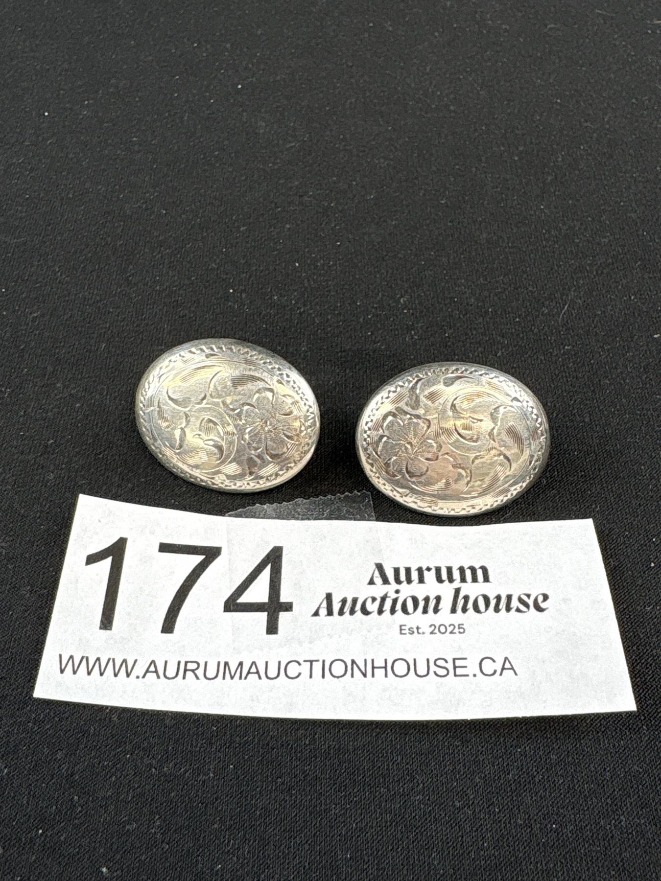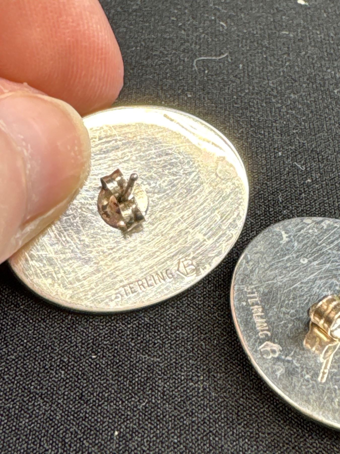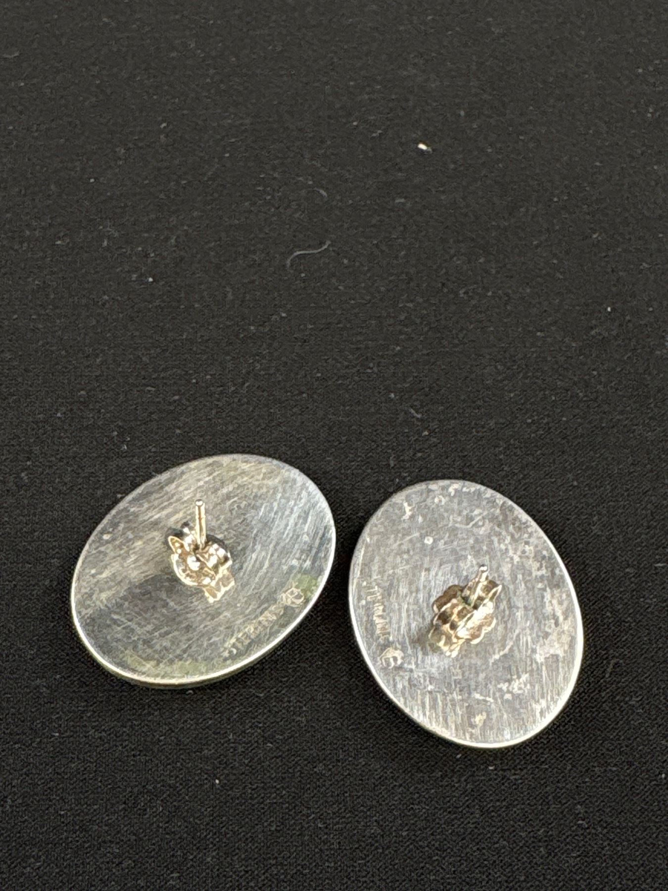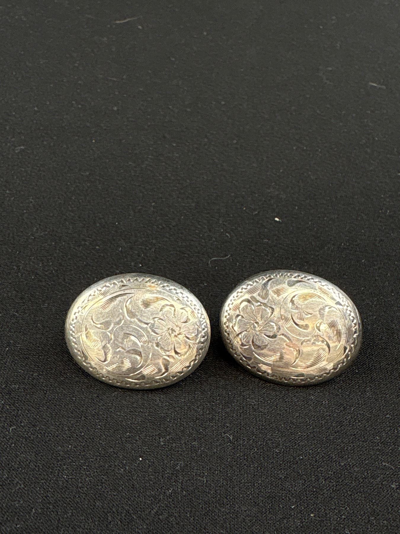 Vintage Sterling Silver 925 Etched Oval Pierced Post Earrings - Signed Sterling With Burkhardt Jewellers Ltd Mark - 50's or 60's