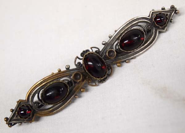 Vintage Sterling Silver Garnet Pin, measures 3.25''L, 11.45g in total wt.