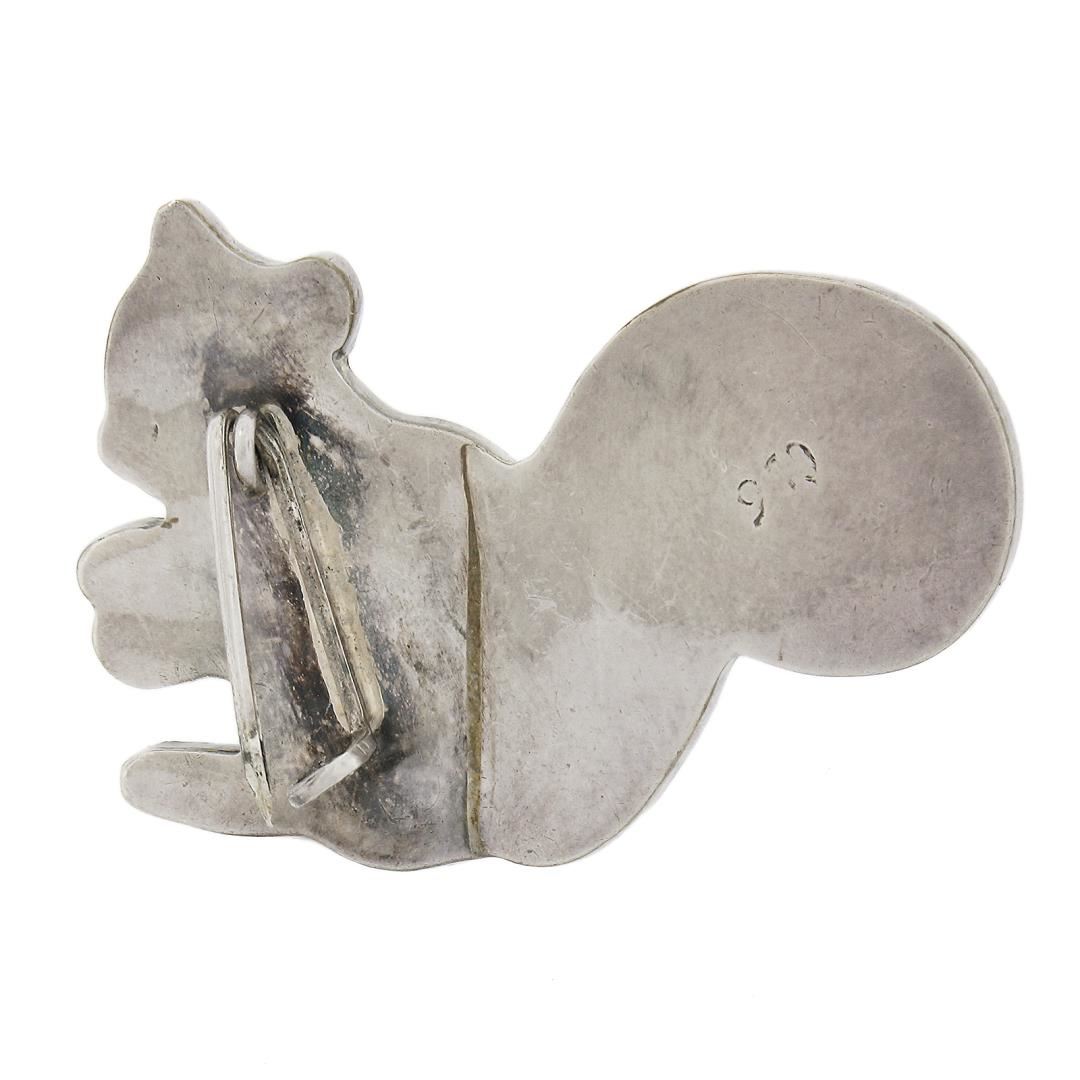 Vintage Sterling Silver Inlaid Set Custom Cut Lapis Lazuli Squirrel Brooch Pin