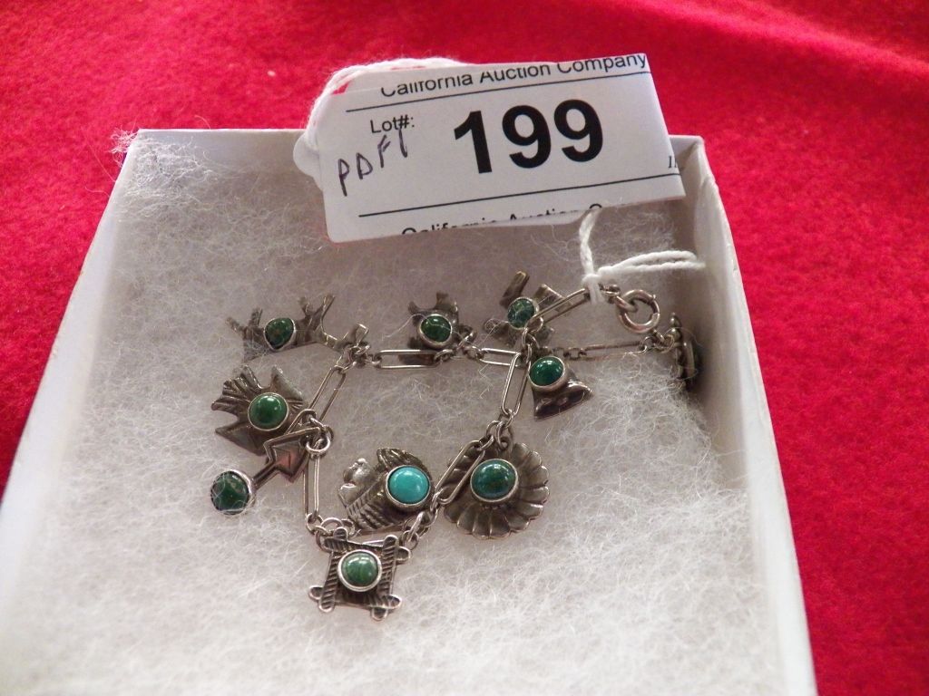 Vintage Sterling Silver & Turquoise Charm Bracelet