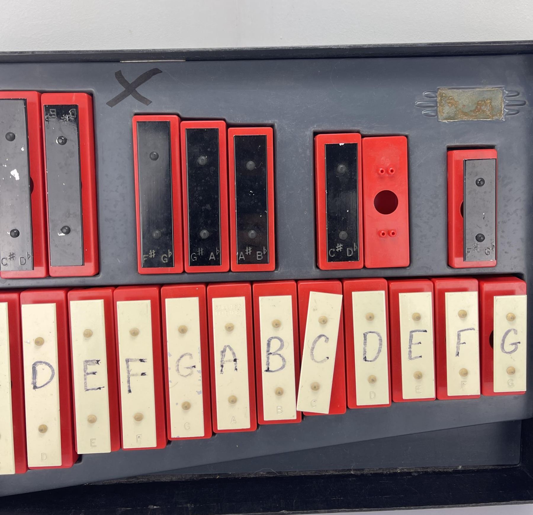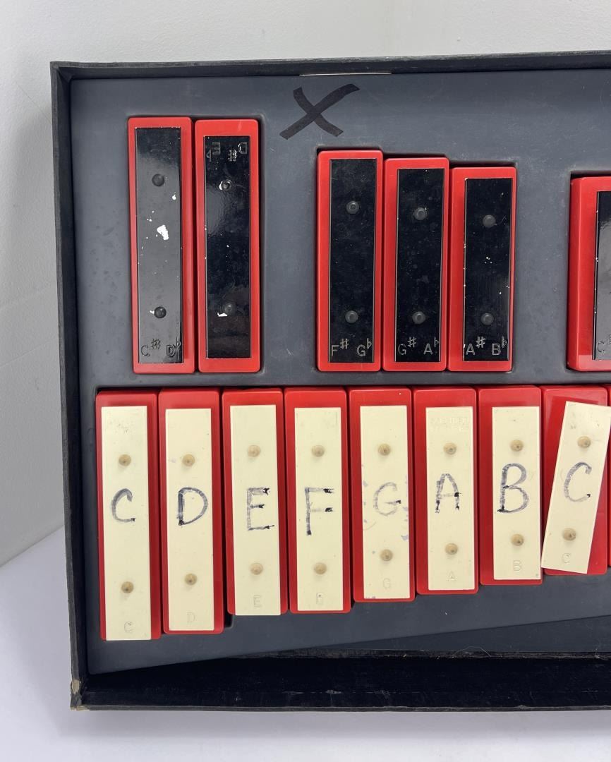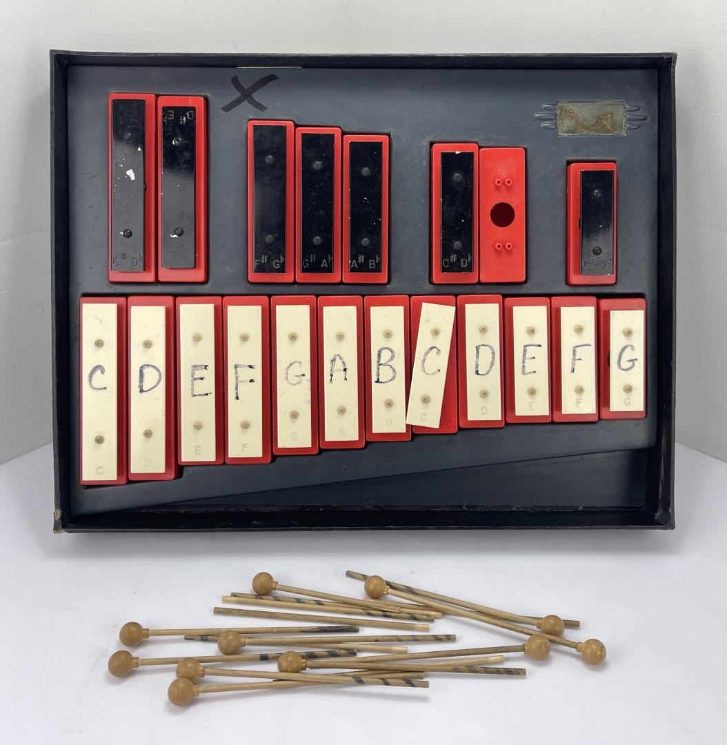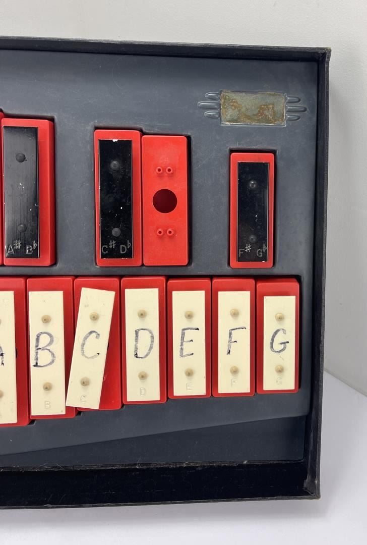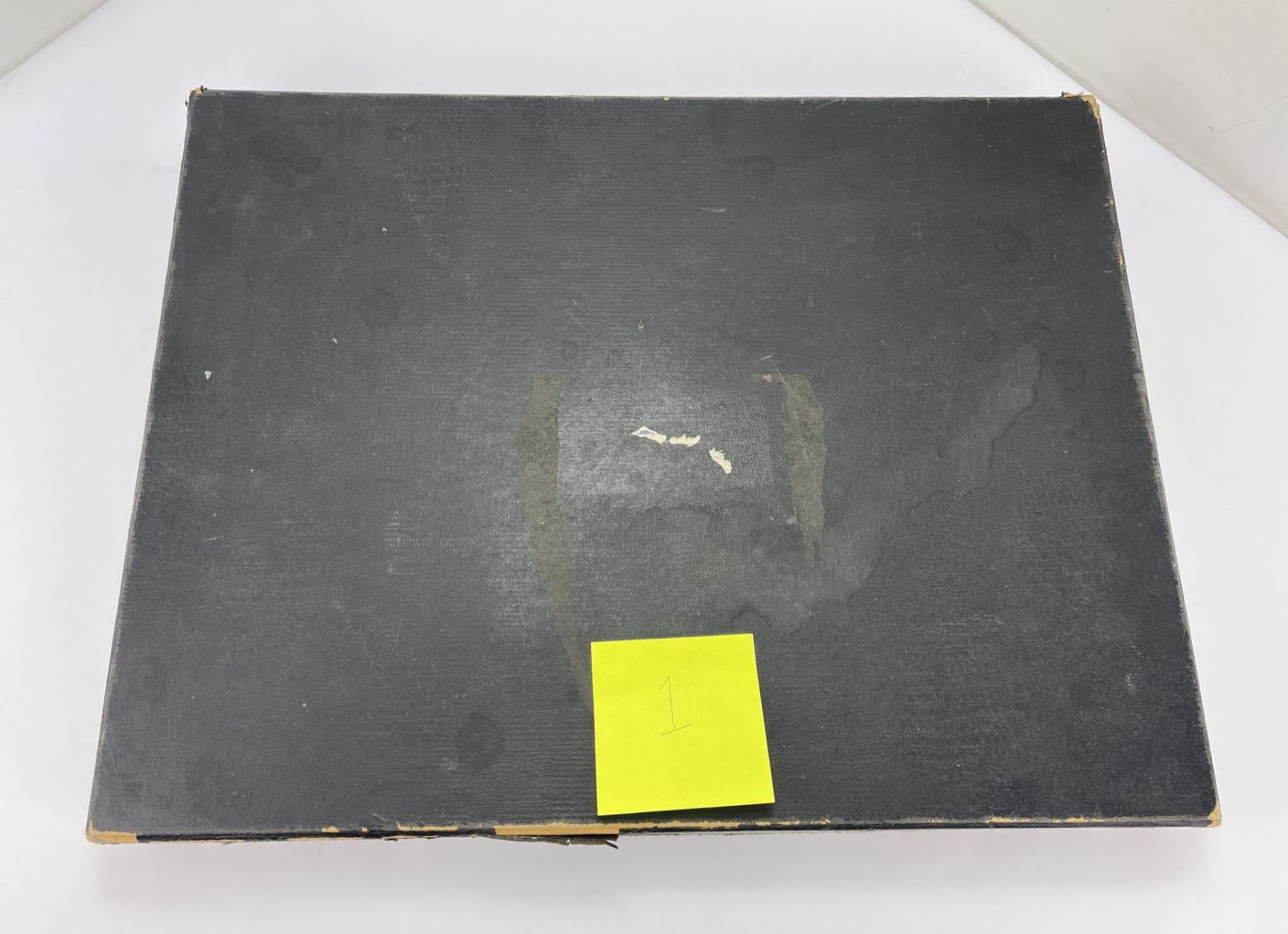 Very nice set in original box. Missing one tone plate as shown. Box is 17" by 22".