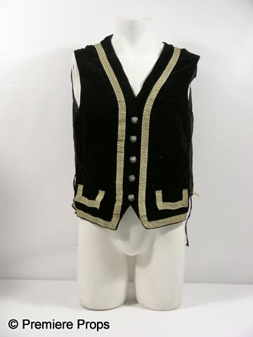 Vintage Studio black velvet with gold design 'Loopold Verch' vest with lining, metal buttons up the front and tie in the back. (Stamped inside)