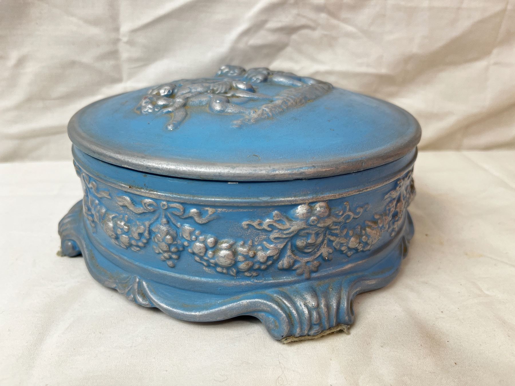 Vintage Style Ceramic Trinket Box - Signed "JR/82"