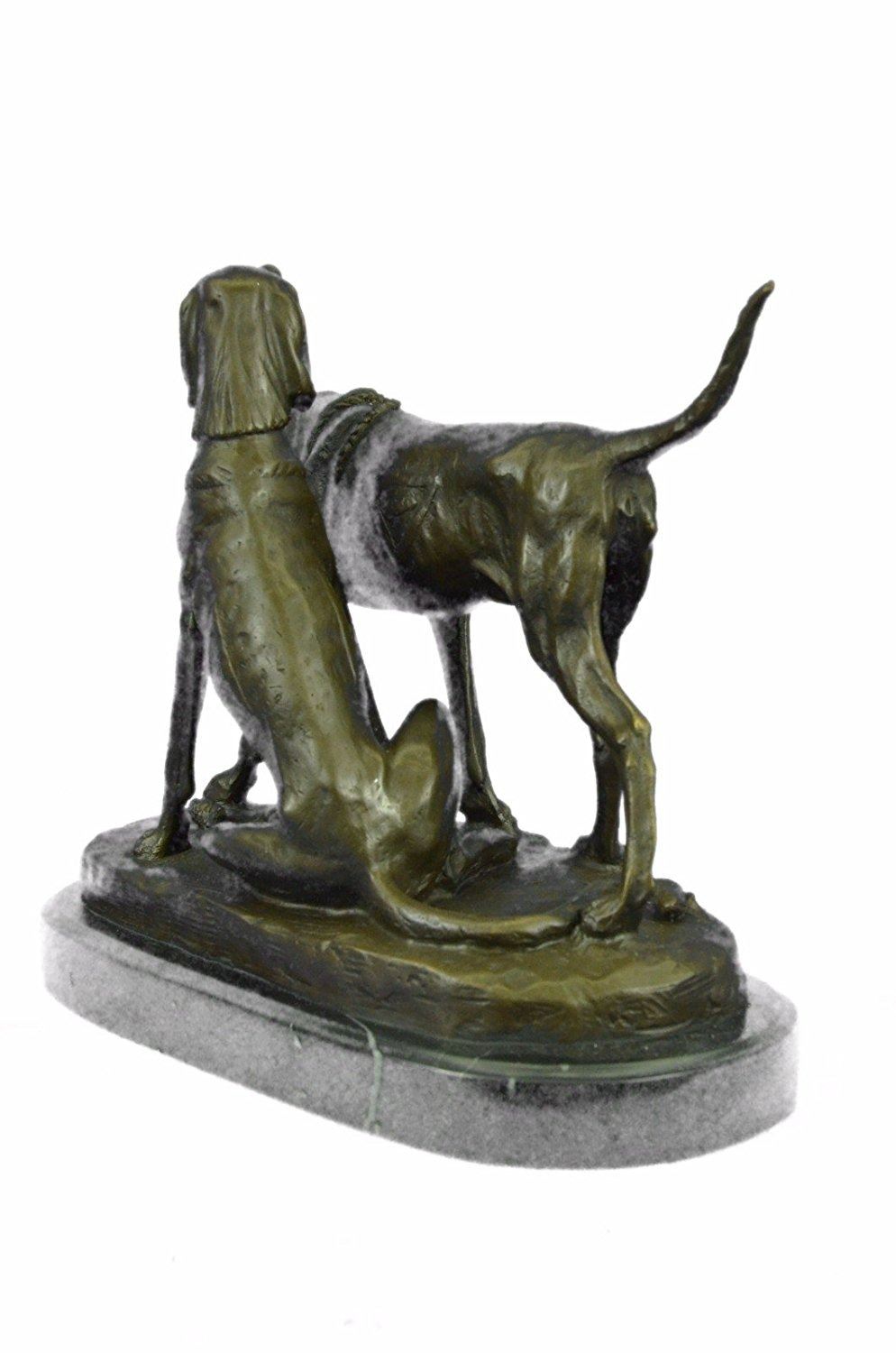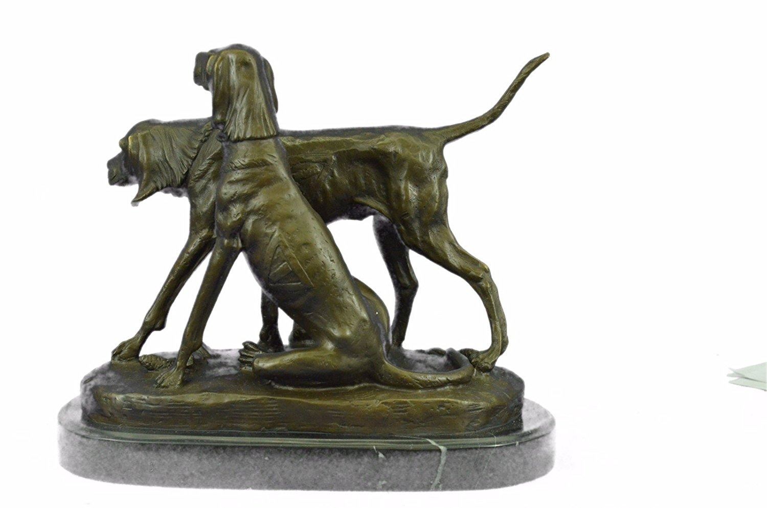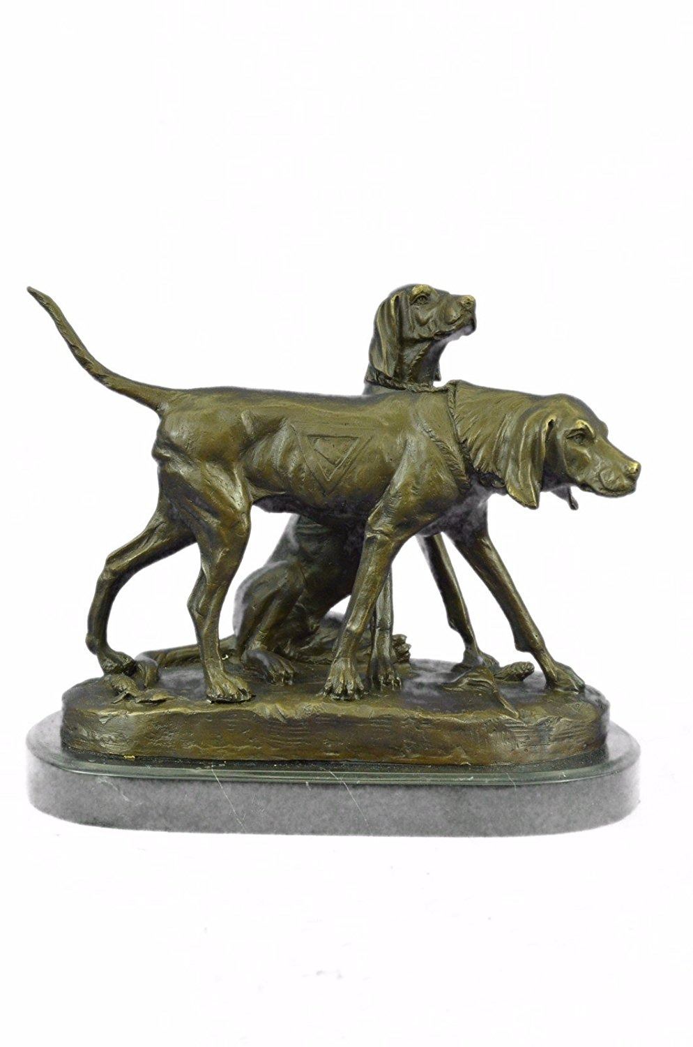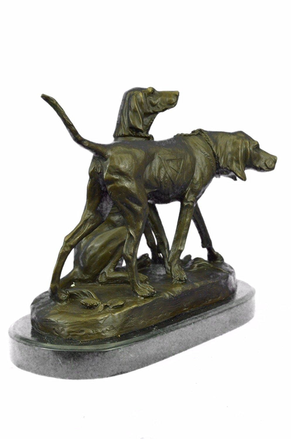 Features a fine group of alert pointers was originally cast circa 1890. Our casting was made using the finest pure bronze in the hands of the experienced artisans working in our art foundry in Europe. Beautifully detailed and features a deep, rich patina finish fused into the bronze itself so that it will endure for hundreds of years. The piece is mounted onto a marble base, stands 11 inches high by 18 inches wide. This is a beautiful work of art and a stunning piece at a very affordable price. Bronze Masseur: Height 11 inches X Length 13 inches X Width: 7 inches. Inventory: 2570l11652