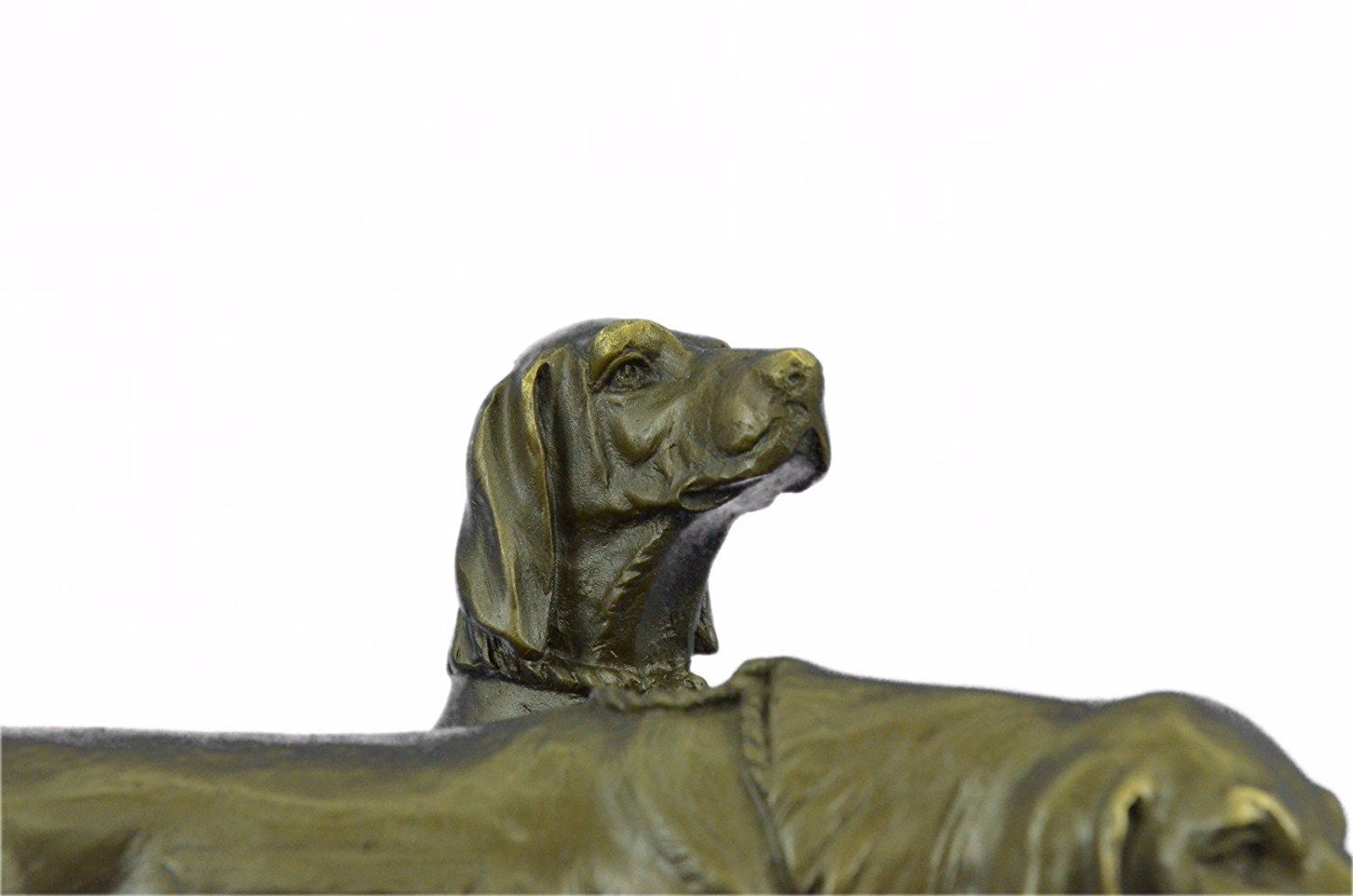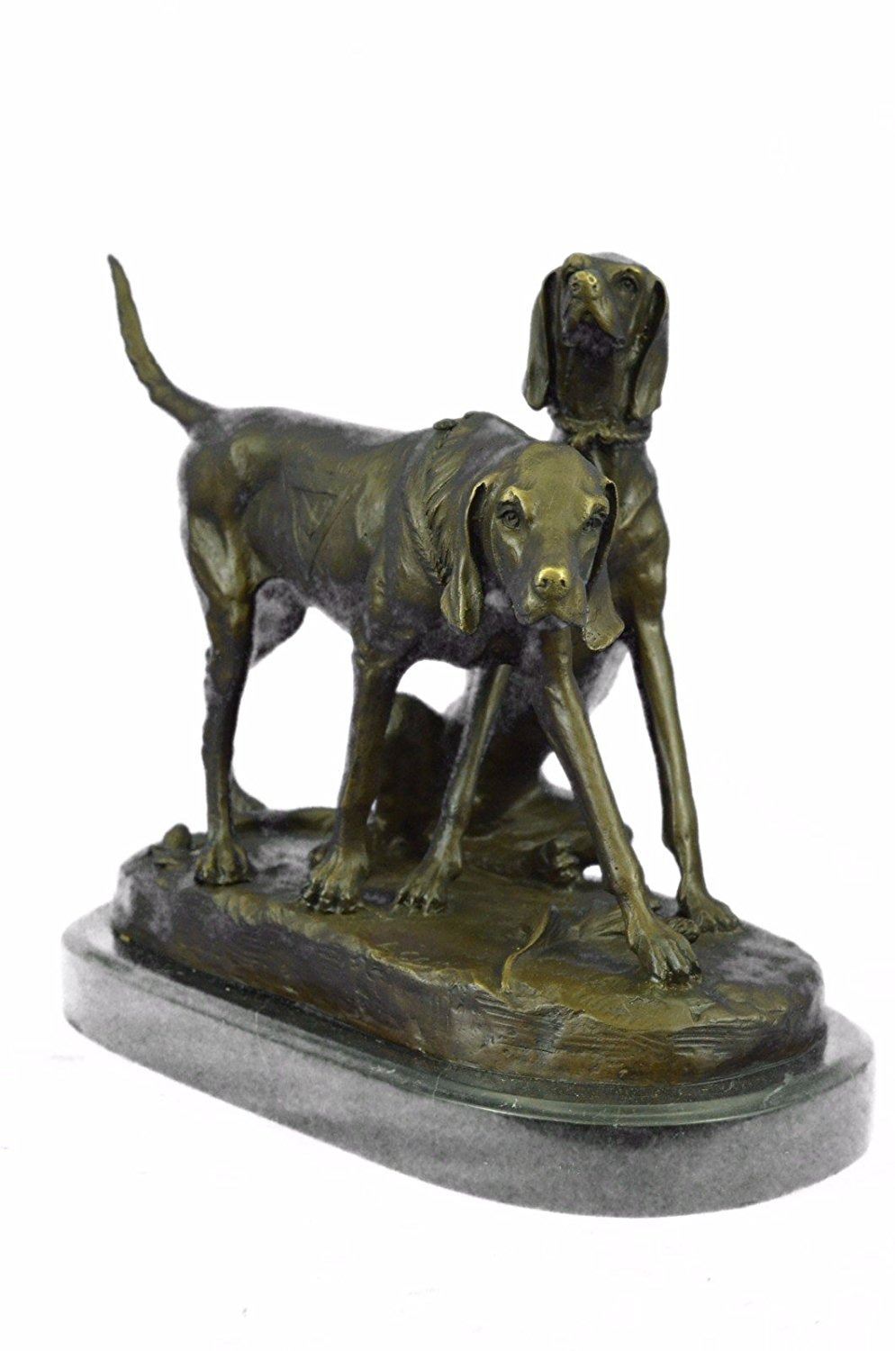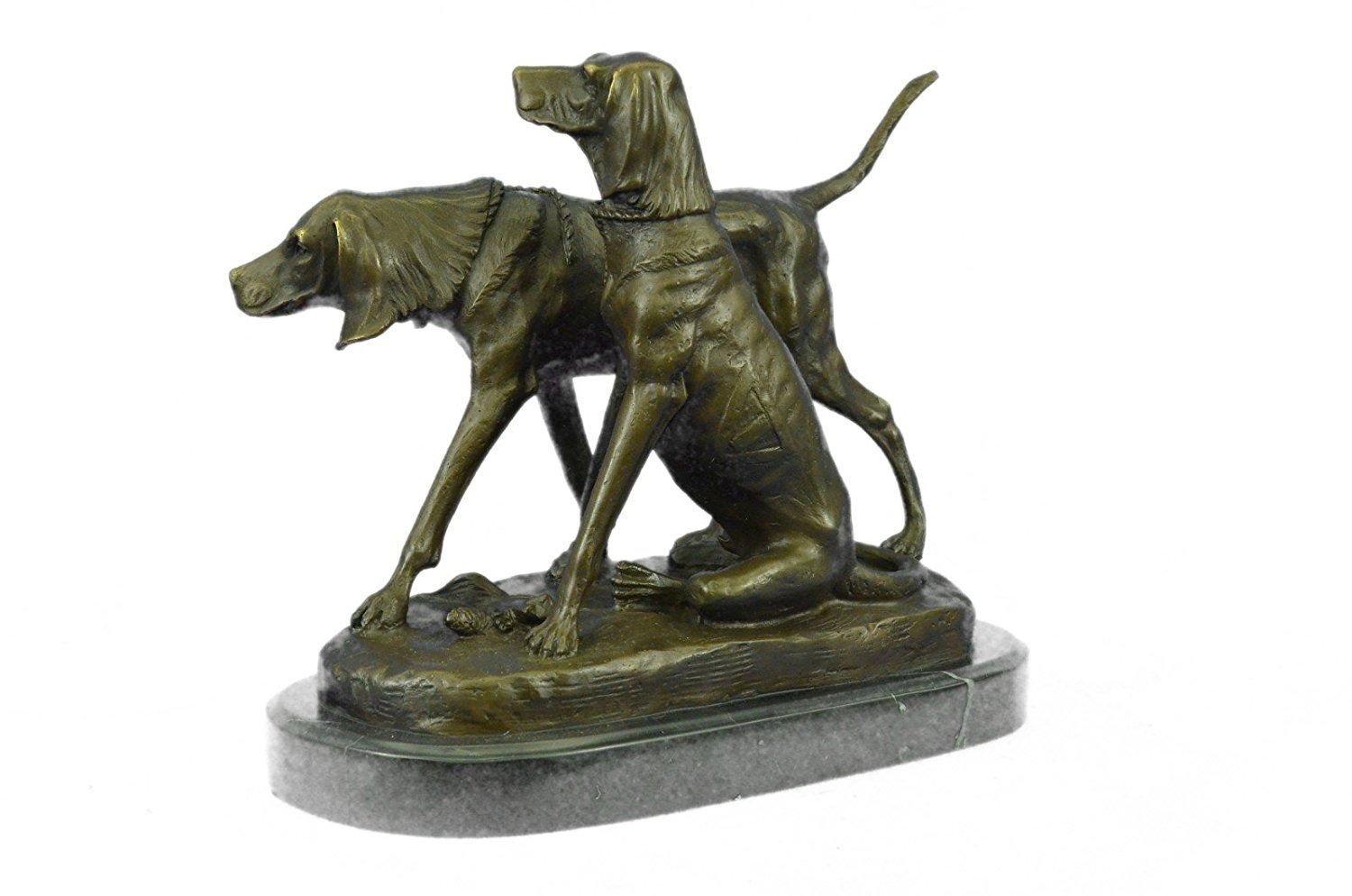Features a fine group of alert pointers was originally cast circa 1890. Our casting was made using the finest pure bronze in the hands of the experienced artisans working in our art foundry in Europe. Beautifully detailed and features a deep, rich patina finish fused into the bronze itself so that it will endure for hundreds of years. The piece is mounted onto a marble base, stands 11 inches high by 18 inches wide. This is a beautiful work of art and a stunning piece at a very affordable price. Bronze Masseur: Height 11 inches X Length 13 inches X Width: 7 inches. Inventory: 2570l11652