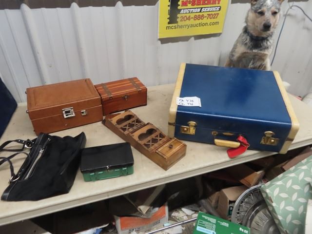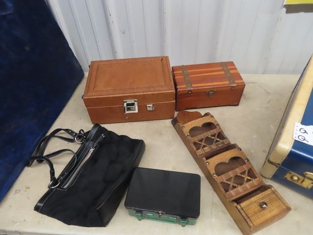 Vintage Suitcase, Trinket Box, Letter Holder, Metal 1st Aid Box & Purse