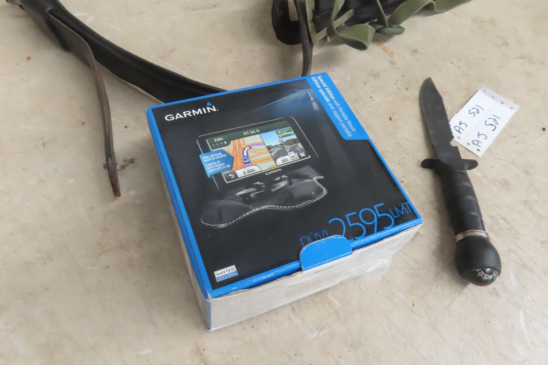 Vintage Survival Knife, Compass with Leather Scabbard & Belt + Garmin GPS
