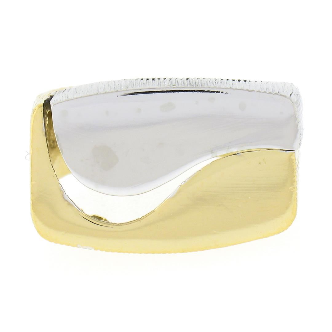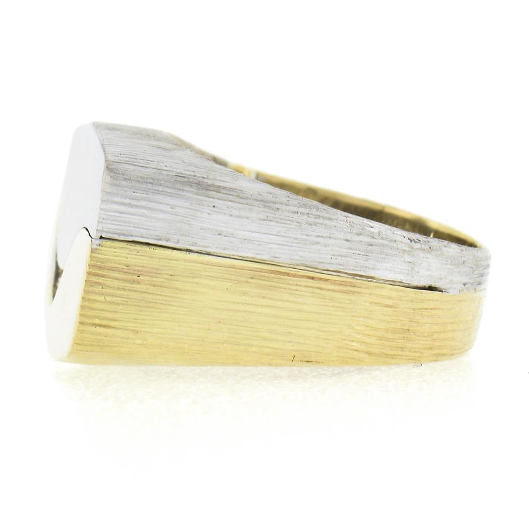 A vintage solid 18k yellow & white gold ring. The ring is size 7.0, weighs a total of 10.69 grams, and measures 12.2mm wide.