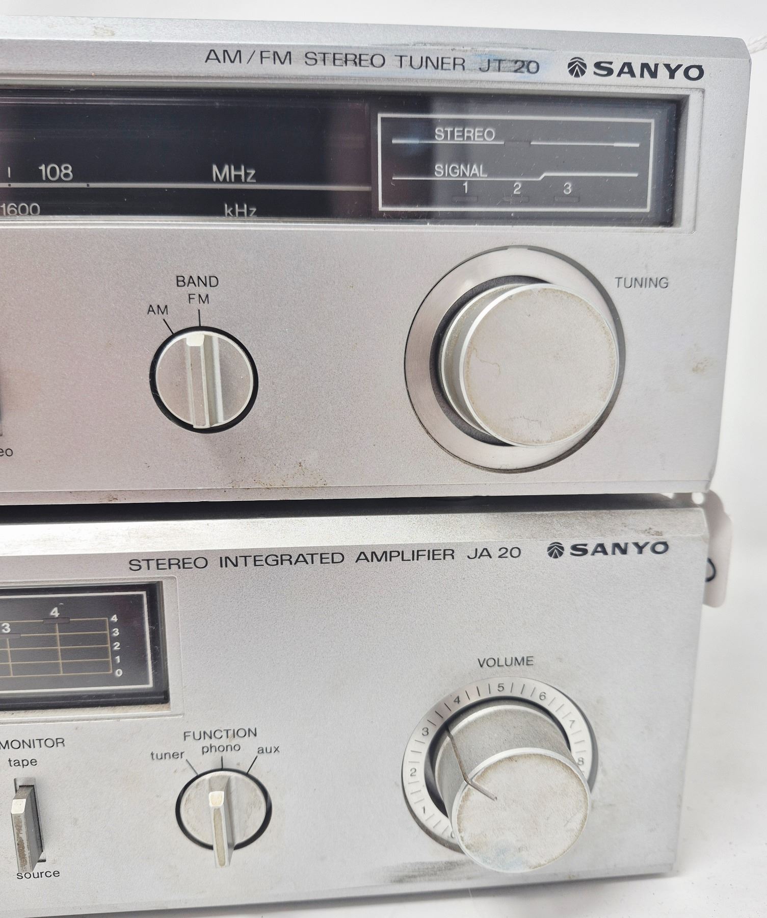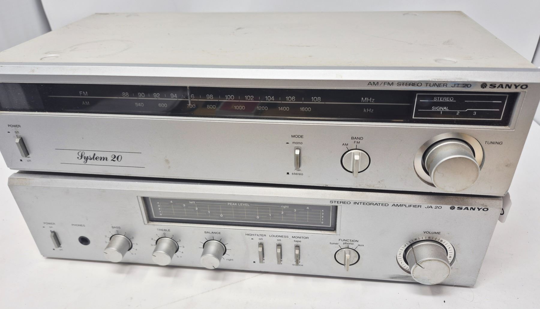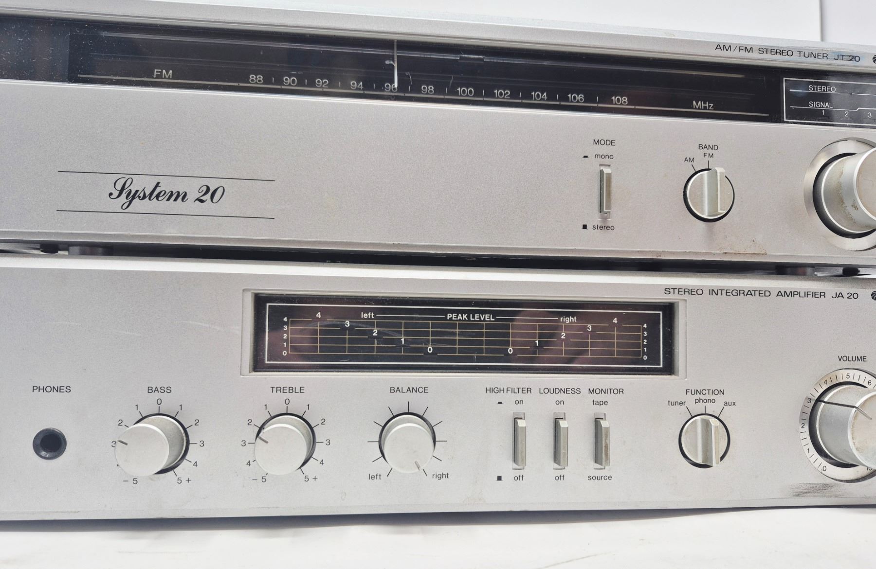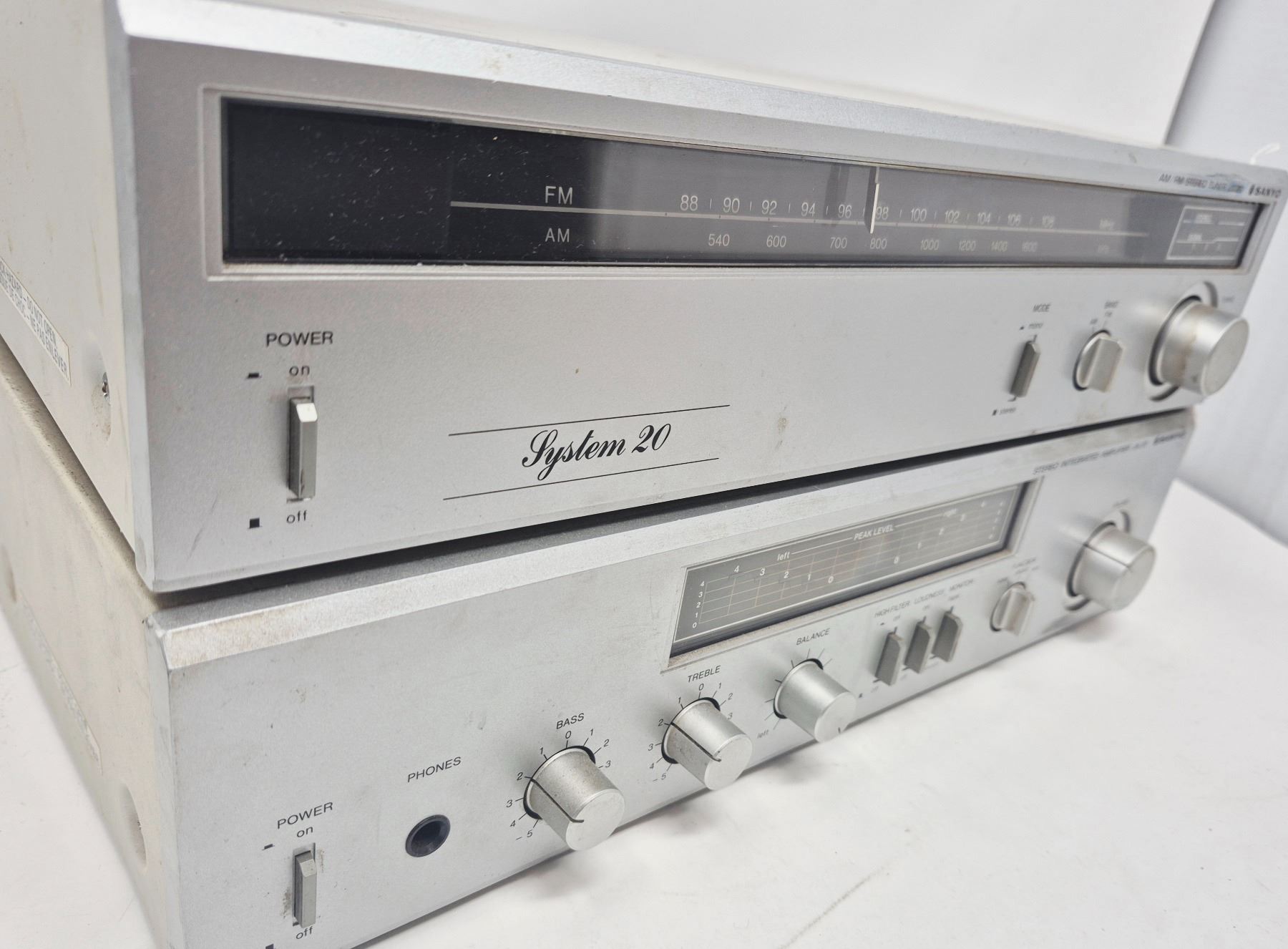 Classic silver System 20 AM/FM tuner and matching amplifier with analog controls and retro display. Great for vintage audio collectors.