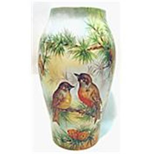 Limoges vase, decorated with birds on a pine branch & pinecones, 11.5"h. Marked T & V for Tressemann & Vogt. Excellent condition, free from any chips, cracks or repairs. <BR>