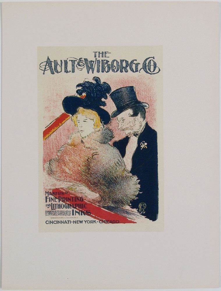 This is a vintage lithograph print from the set printed in 1951 by Mourlot Freres of Paris. Original poster artwork by Henri de Toulouse-Lautrec. Printed on superb quality paper; colors are bright and crisp. SIZE: Approx. 9 1/4" x 12 1/2". This was Lautrec's smallest colour lithograph, made for an American ink manufacturer, and it shows Emilienne d'Alencon and Gabriel Tapie de Celeyran at the Cabaret des Decadents. The study Dortu P.615, signed and dated 1896, also bears the inscription: for the Ault and Wiborg Co. Cincinnati. The edition of the poster with full lettering was printed in America after the zinc plates - which are now in the Art Institute of Chicago - had been sent there.