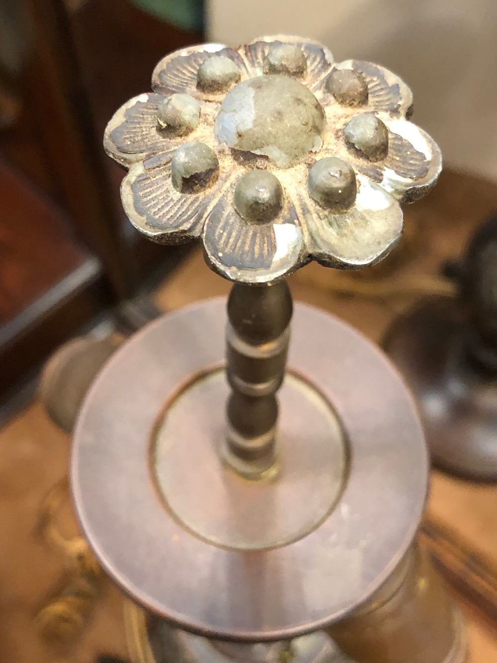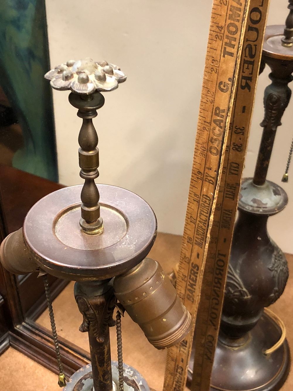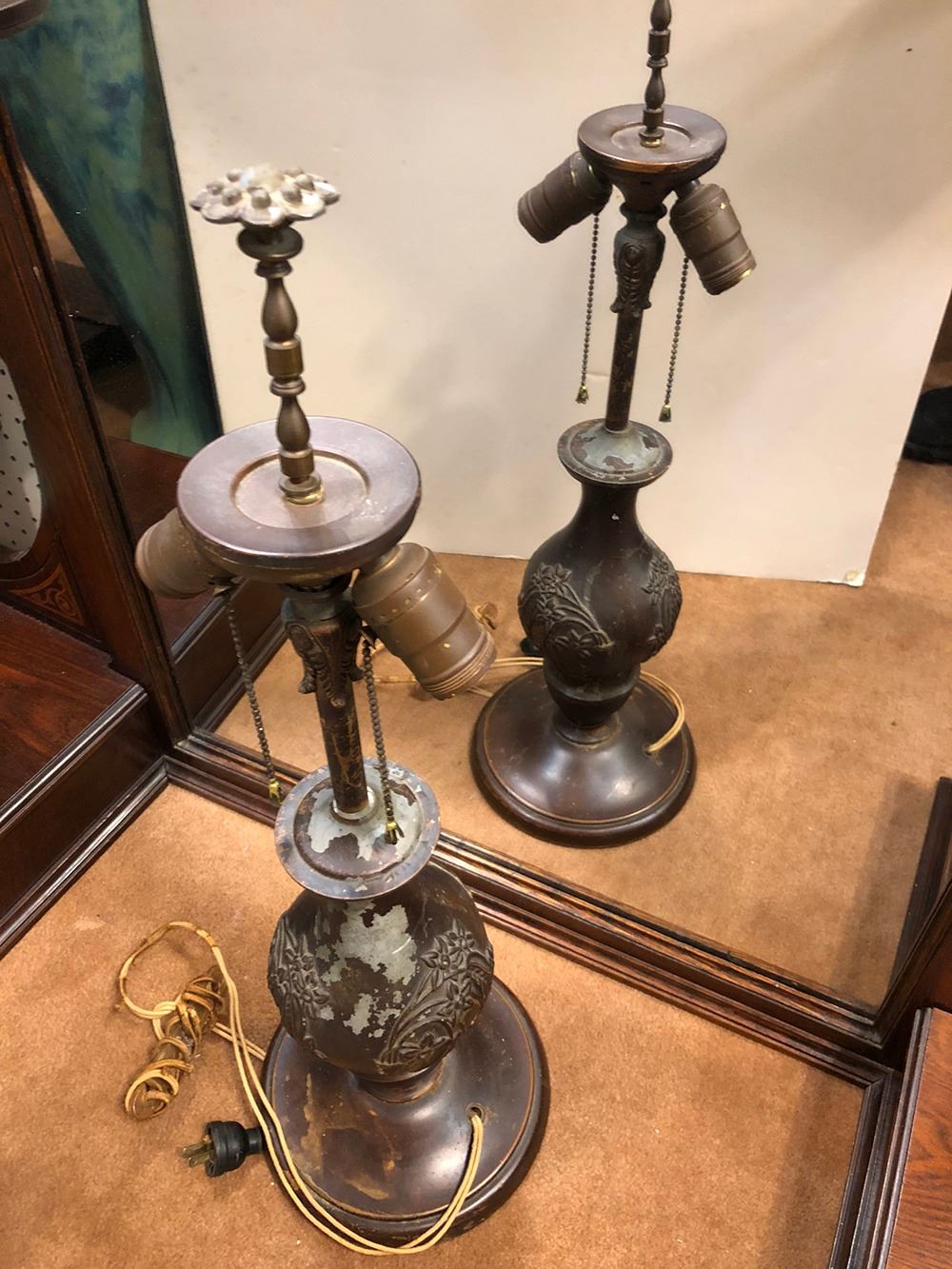 Vintage table lamp by The Charles Parker Co., double pull, double light with floral pattern.