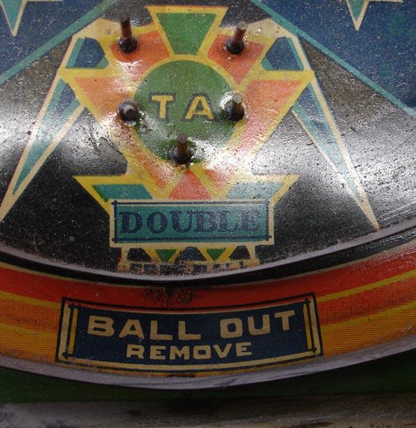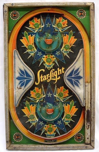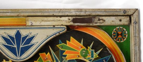 Vintage Table Top Tin Pinball Board. Missing glass top and balls. Shooter mechanism needs work. Made by ''Durable Toy & Nov. Corp., N.Y.C.,N.Y.'' Measures 14''x23''. Buyers Pay Actual Shipping and Handling Charges(see terms and conditions for more information).