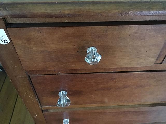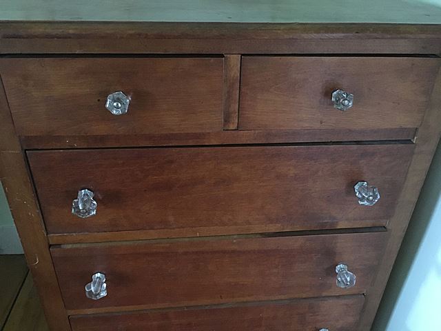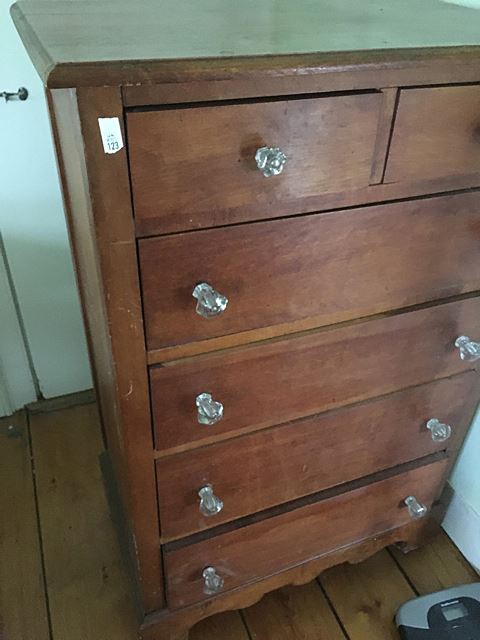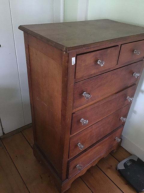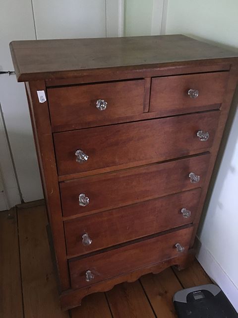 Tall Chest with original glass handles, measures approx. 30 1/2" wide x 18" deep x 47" tall. This lot is from a 100 year old Farm House in Sharon, CT, at the estate of Mr. John Morgan, a prominate Connecticut farmer, whose family has owned and farmed at this location for over 50 years. This lot can be picked up in Sharon CT for local buyers, or our shipper can pick up and ship to your location.