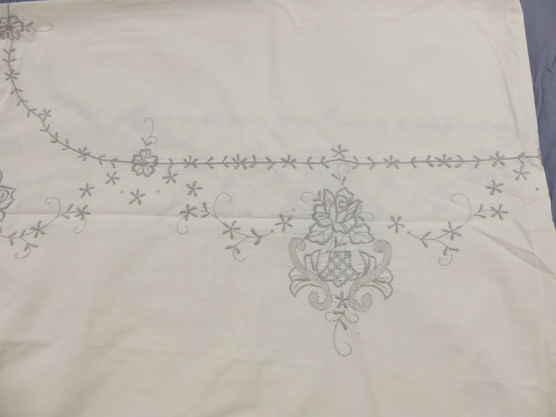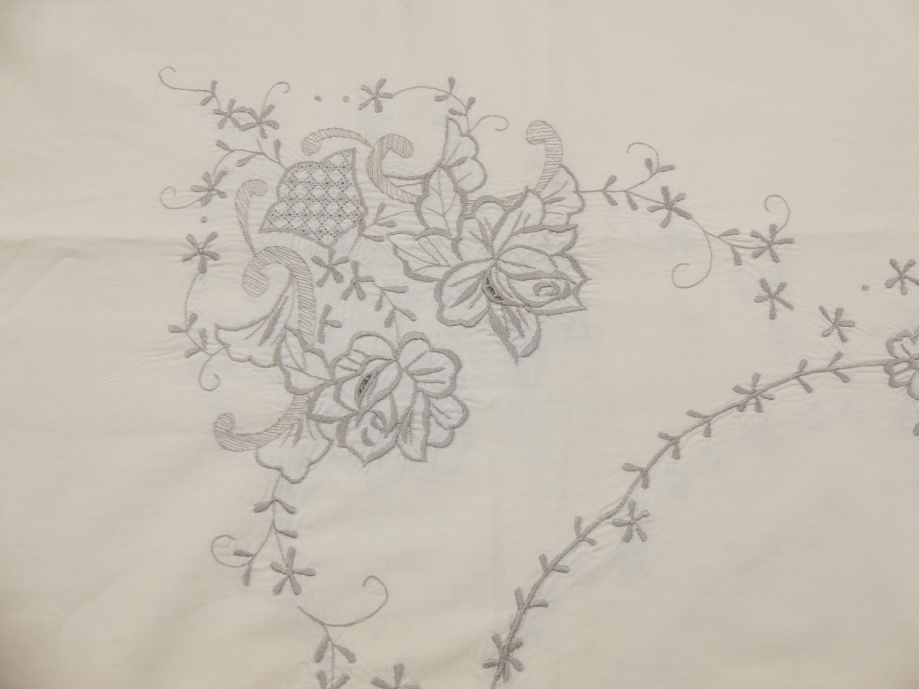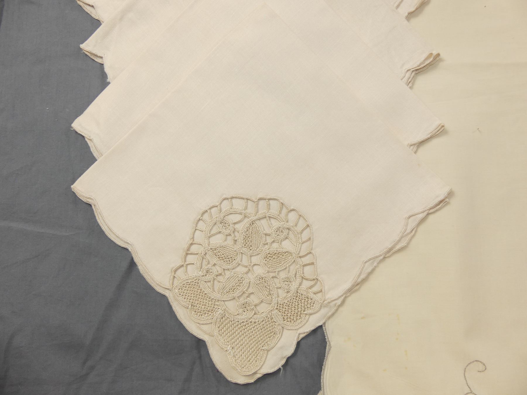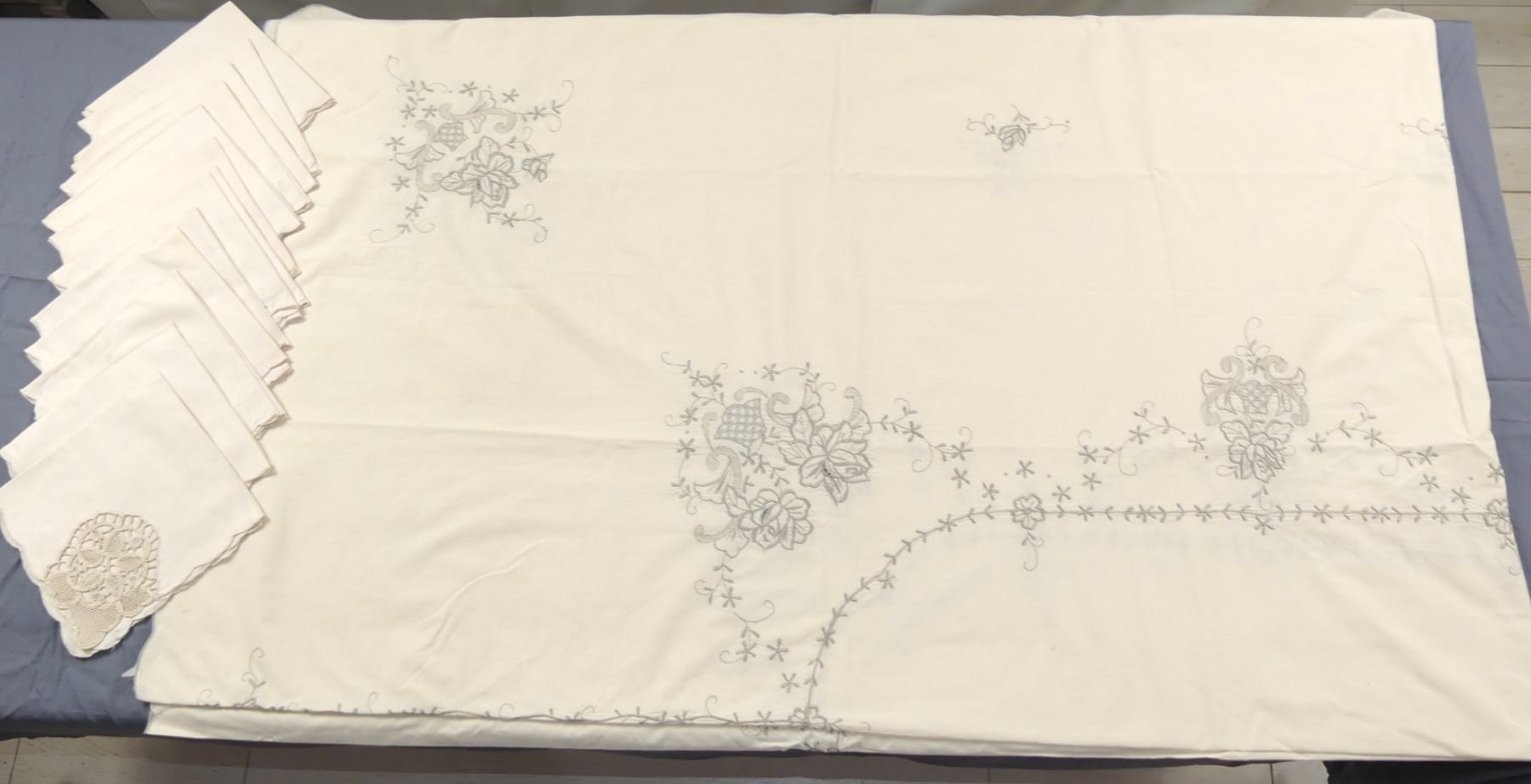 Vintage Tan Embroidered Tablecloth & 14 Napkins (not Exact Match)
