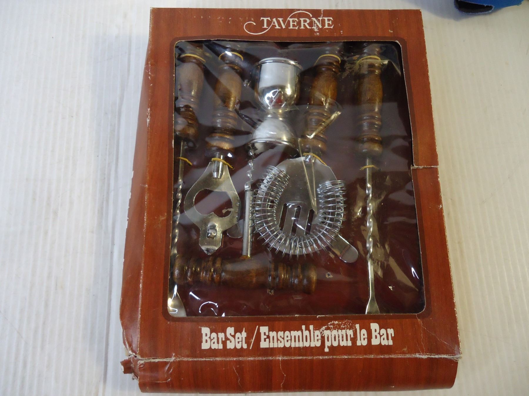 Vintage Taverne Bar Set in Original Box,(2) Beer Koozies and (2) Juice Glasses
