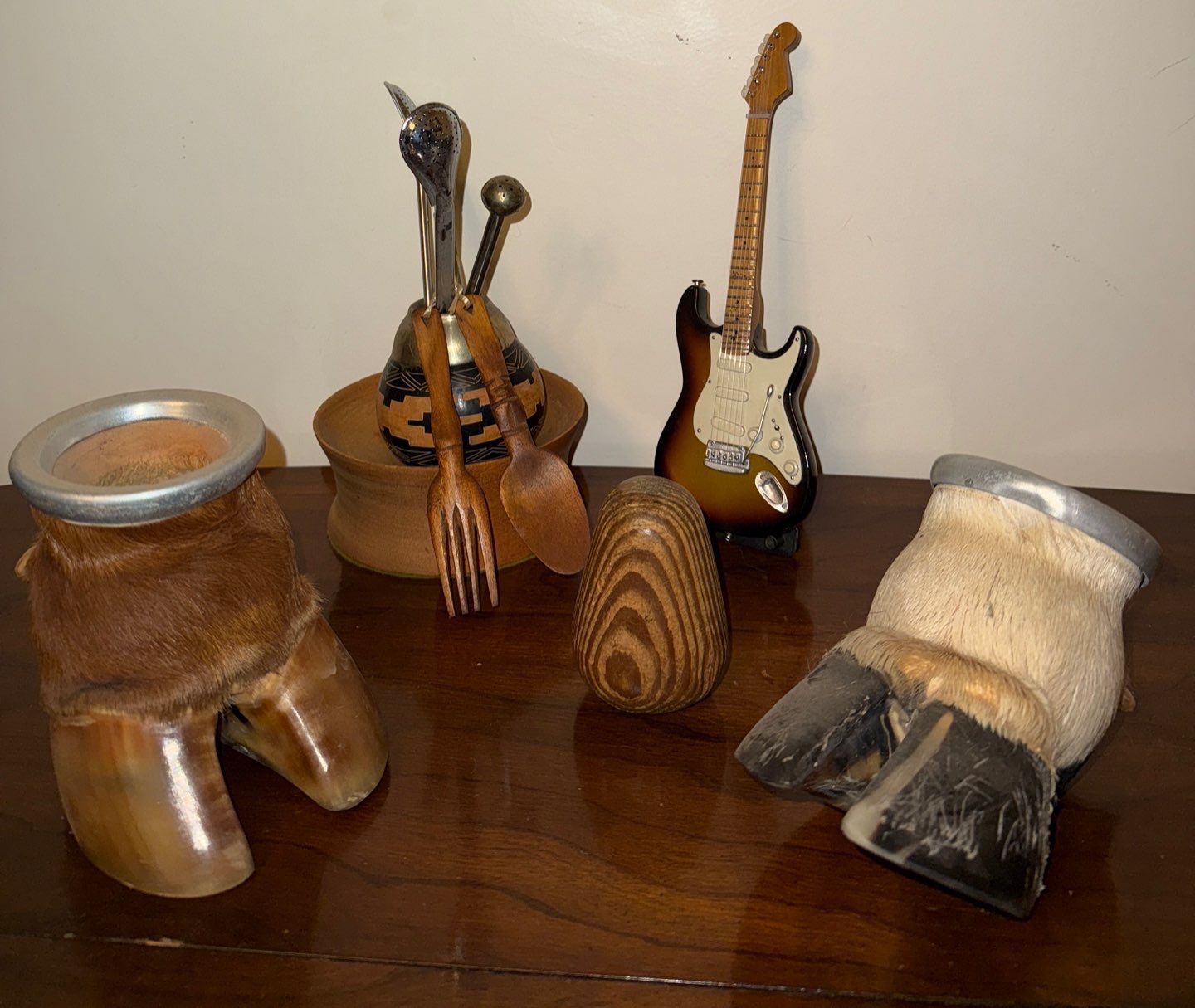 Vintage Taxidermy Hoof Ashtrays & Assortment Of Home Decor 4"tall