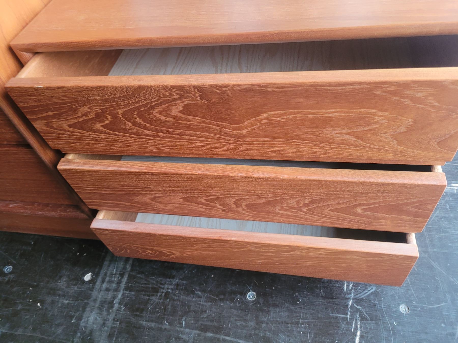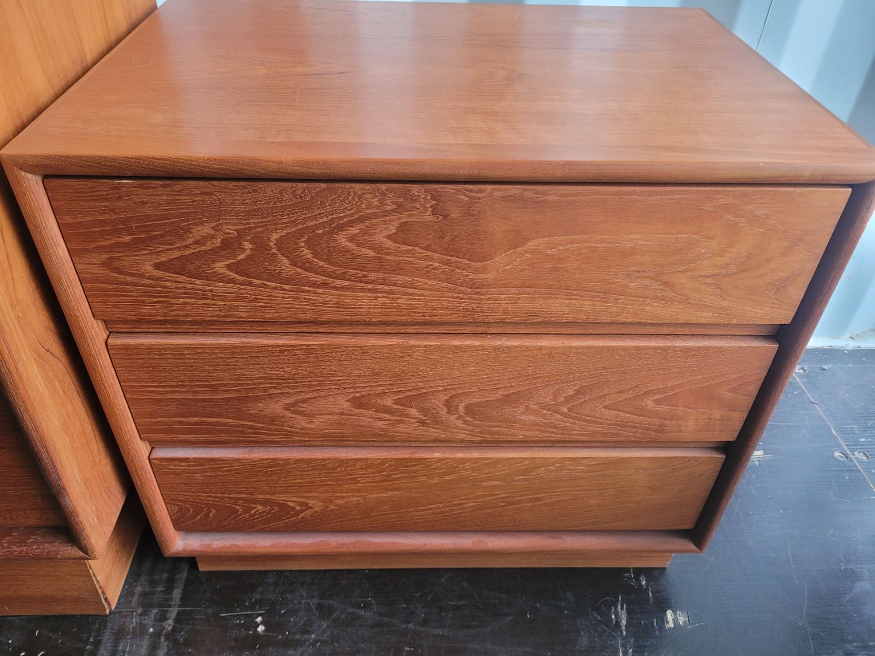 Vintage teak bedside cabinet with 3 drawers. 24x16x21 Pickup at 11 am