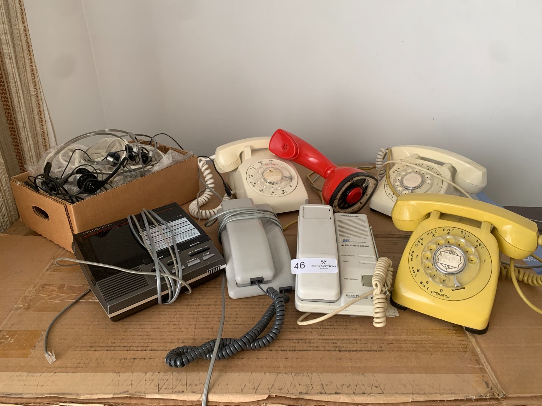 Vintage Telephone and Accessories Lot Including Four Rotary Two Others and Answering Machine