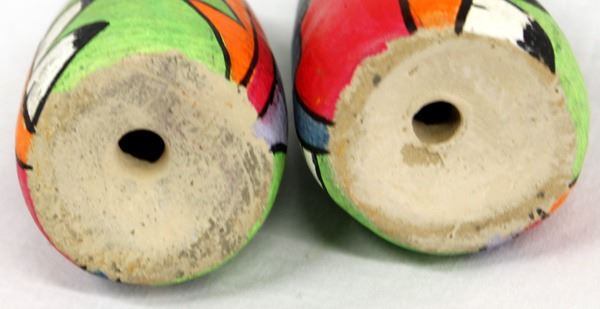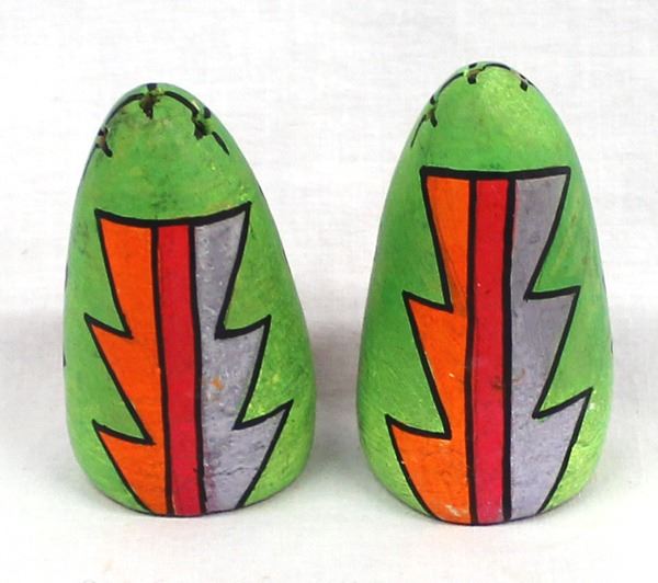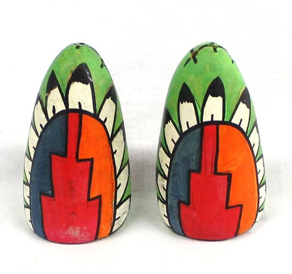 Vintage Native American Tesuque Poster Paint Pottery Salt and Pepper Shakers, measures 3''L x 1.25''D