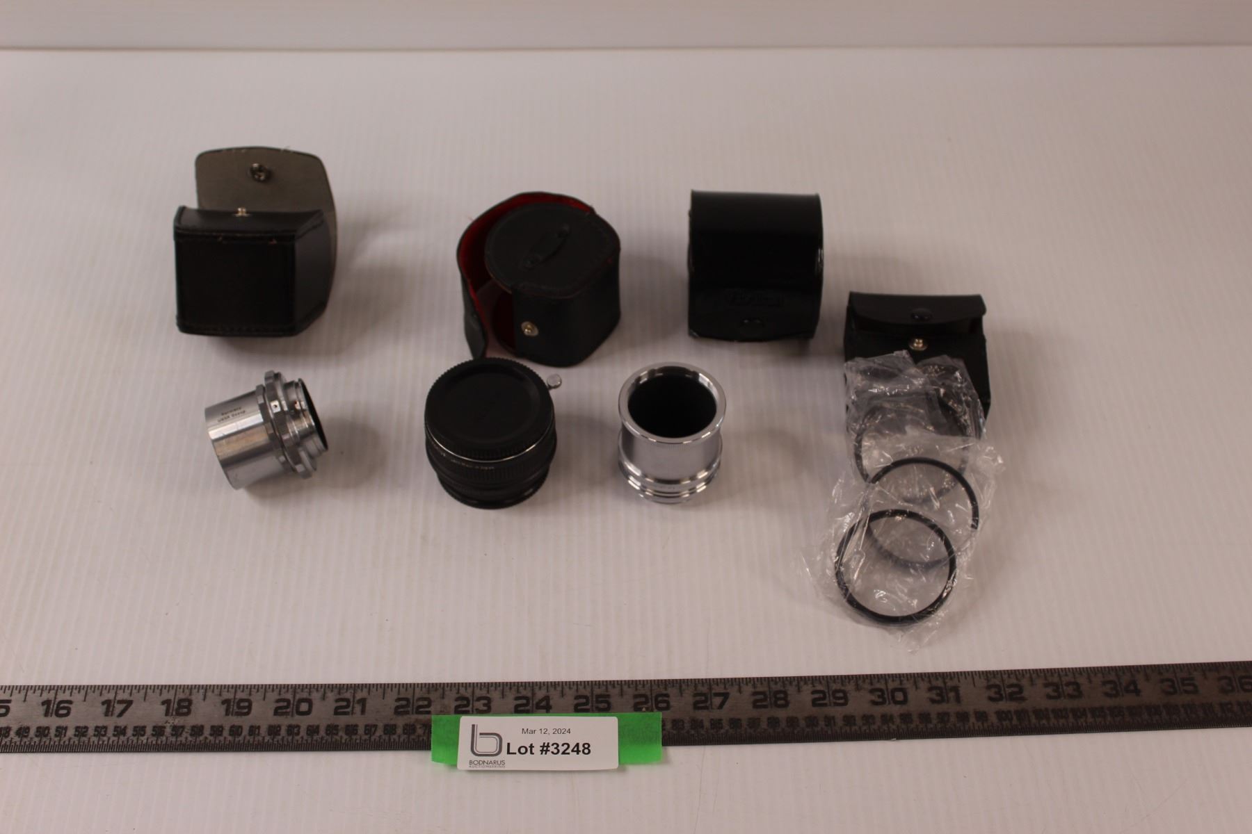Vintage "Thagee" Camera Parts (Made in Germany Under USSR Occupation), Formula 5 Tele Converter for Konica Camera's, Vivitar Spacer & (3) Hakuba "Close Up Filters" - All w/ Cases