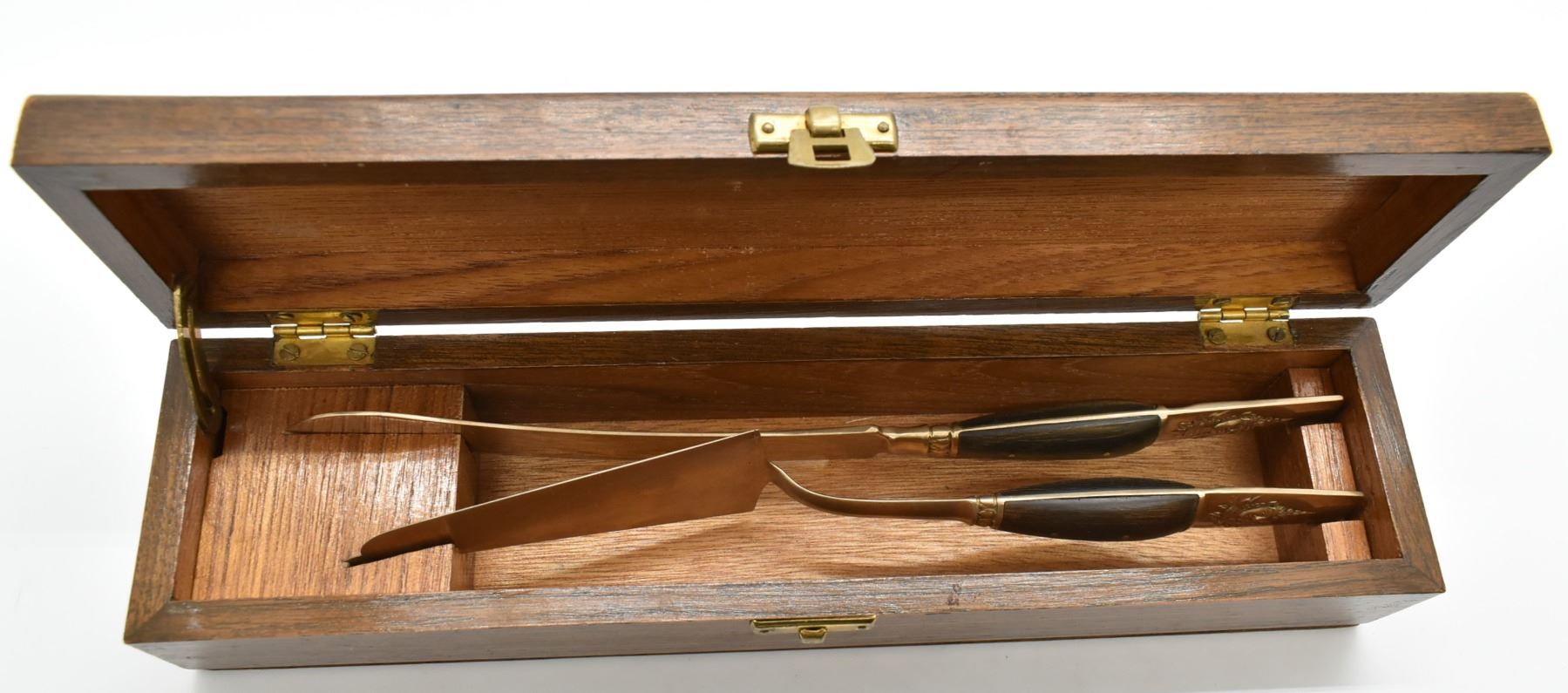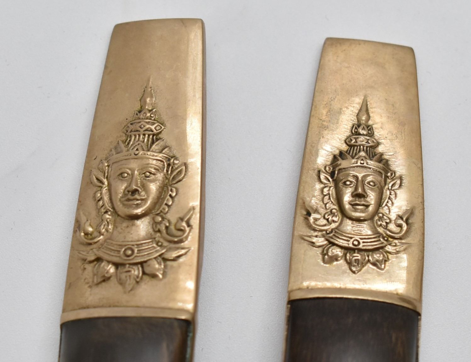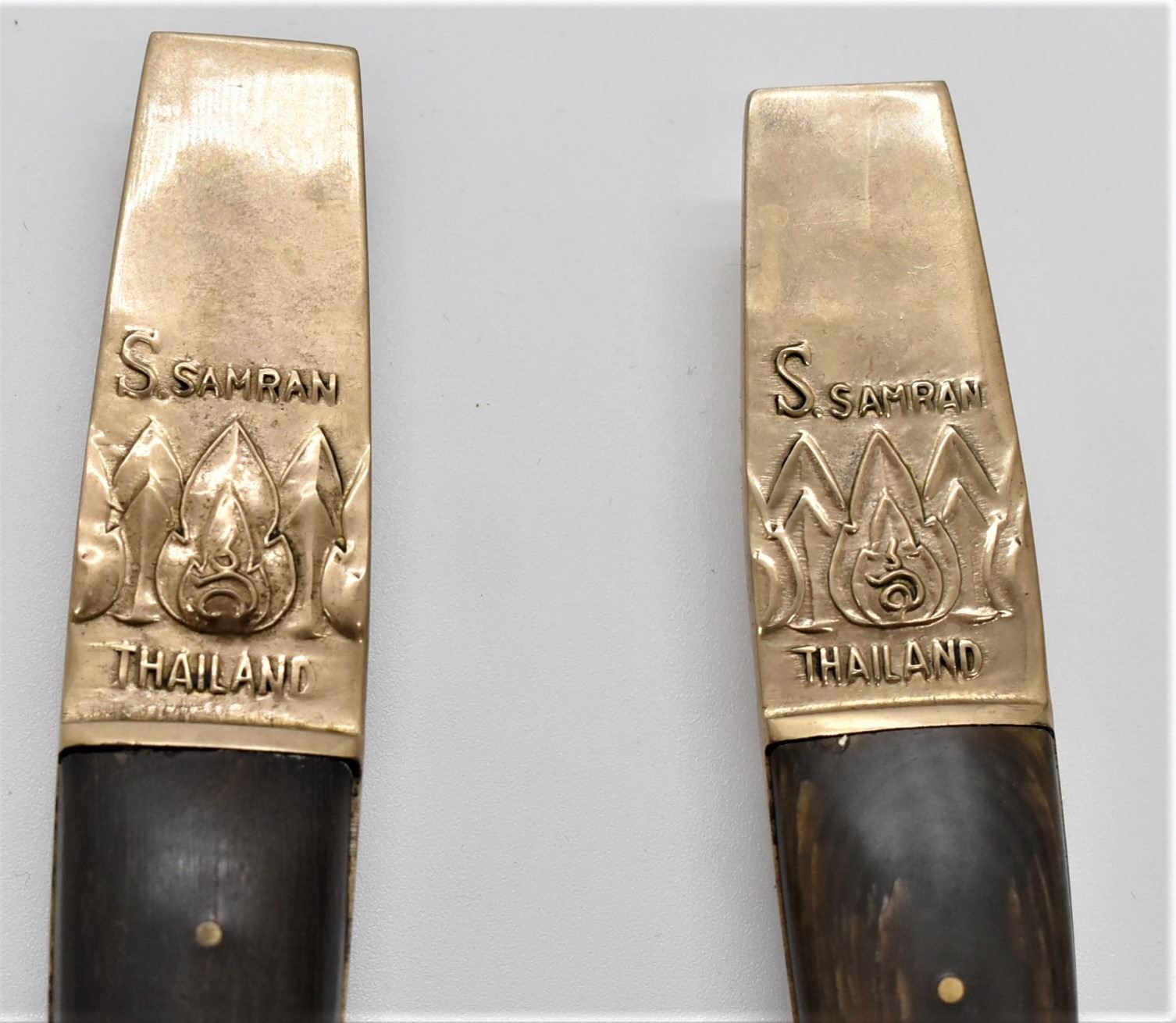 Vintage Thai Bronzeware Cake Knife and Server, comes in hinged wood box, marked S. Samran Thailand, knife measures 11''L, box measures 12.5''L x 2.5''H x 3''W