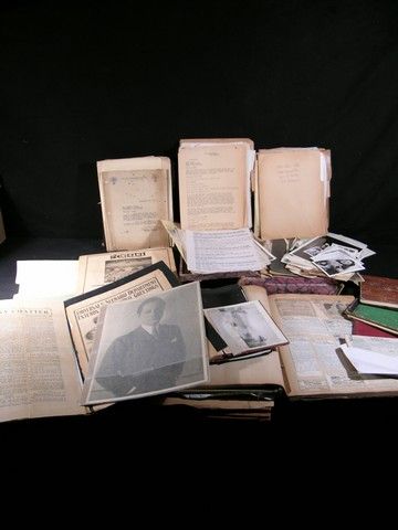 Huge lot of theater paraphernalia, including dozens of vintage photos, plays, newspaper clippings, correspondence, invoices, journals, scrapbooks and more! Formerly on display at the Hollywood Entertainment Museum. Oversized item. Additional postage required.