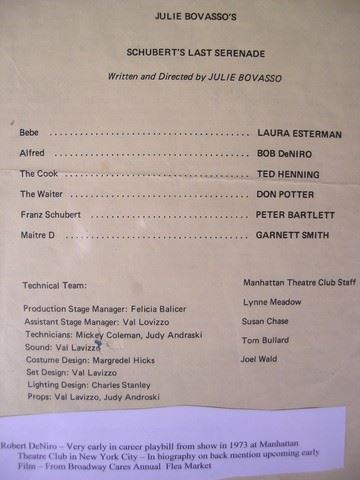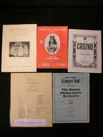 Five vintage programs from a variety of theatrical productions and theatres including, "L'amore di Fatima", "The Casino", The Imperial Theatre, the Boston Philharmonic and the New York Theatre Strategy's production of "Schubert's Last Serenade" starring a young Robert DiNiro.