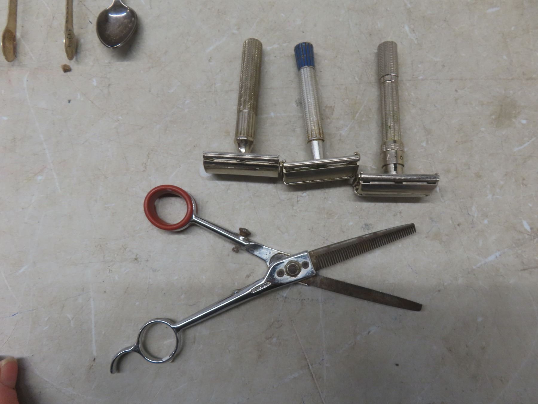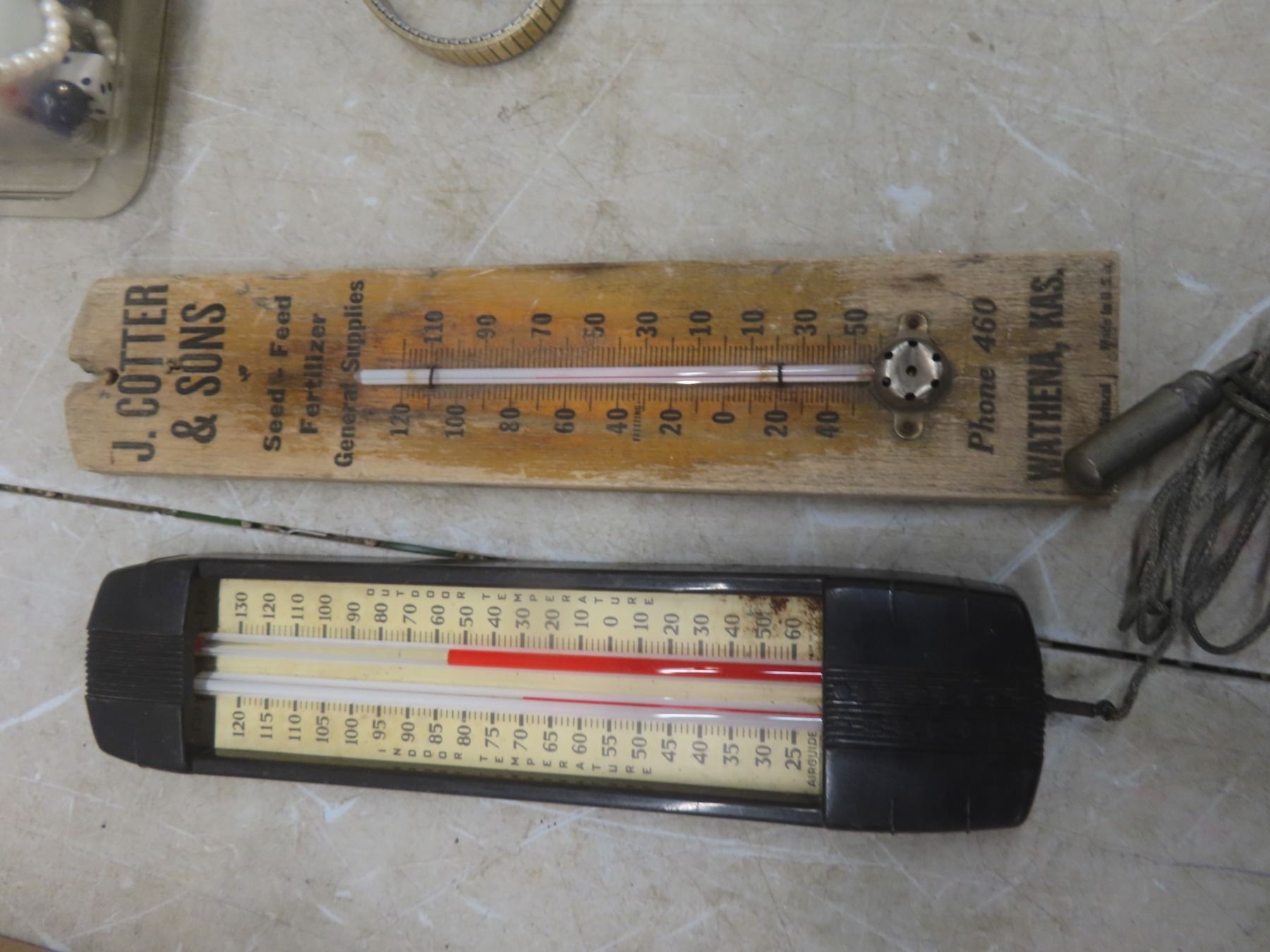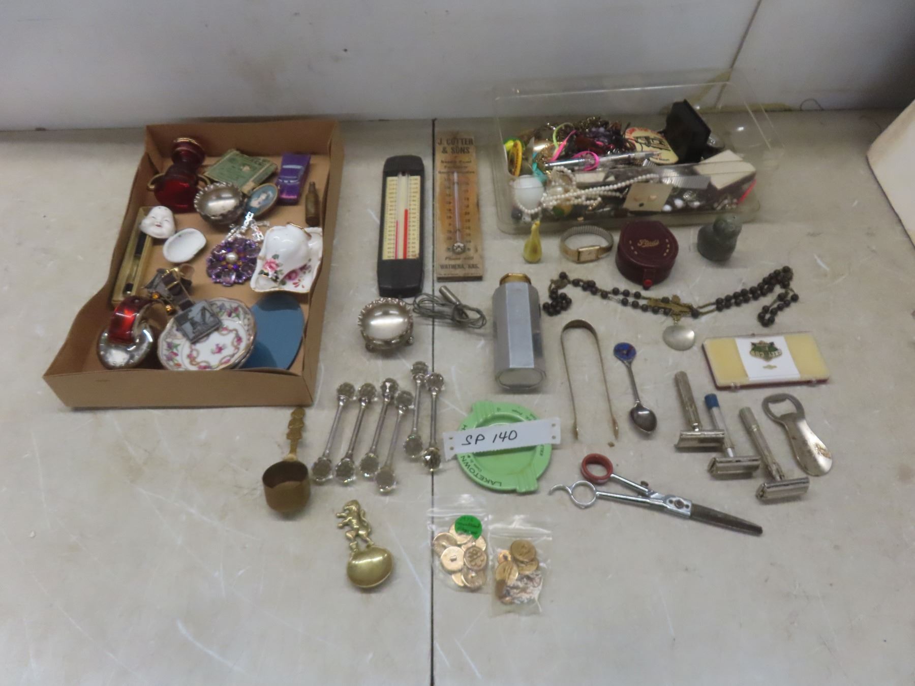 Vintage Thermometer; Vintage Razors; Talc Bottle; Pin Back Buttons; Fashion Jewelry; and More