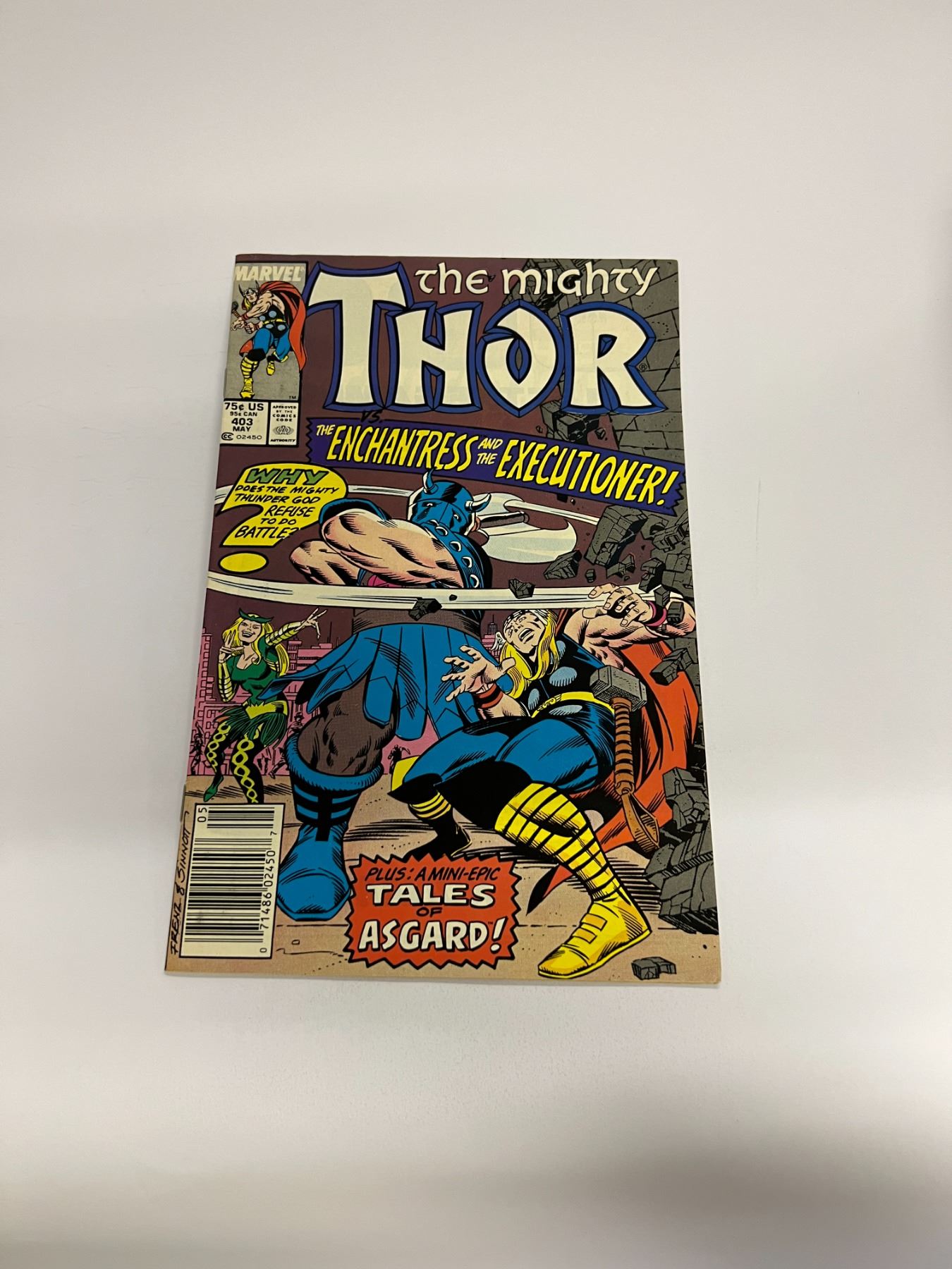 The Mighty Thor #403 The Enchantress and the Executioner! Why Does The Mighty Thunder God Refuse To Do Battle? Plus A Mini Epic Takes of Asgard!, $0.75, May 1989, Bagged and Boarded