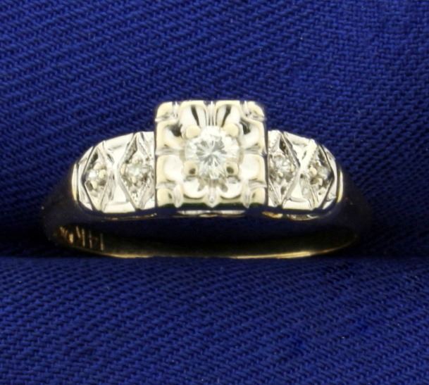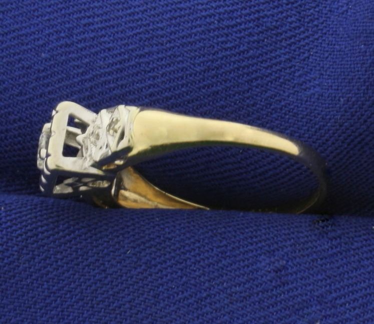 In 14K Yellow and White Gold. Contains a very high quality .1ct round Diamond and four .01ct Diamonds of similar quality, F color/VS clarity. Size 6 1/2. 2.3g