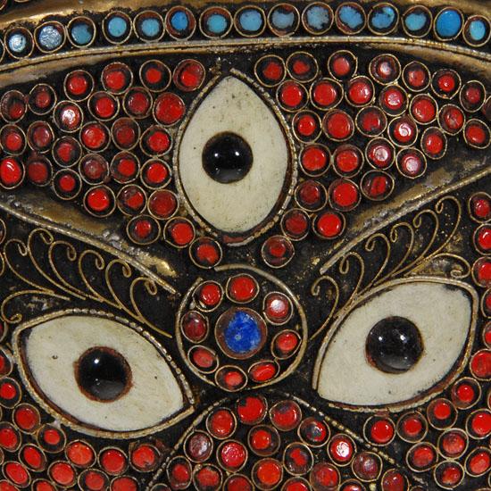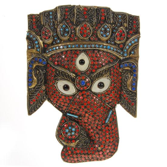 Copper mask adorned with semi-precious stones, 10"