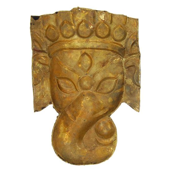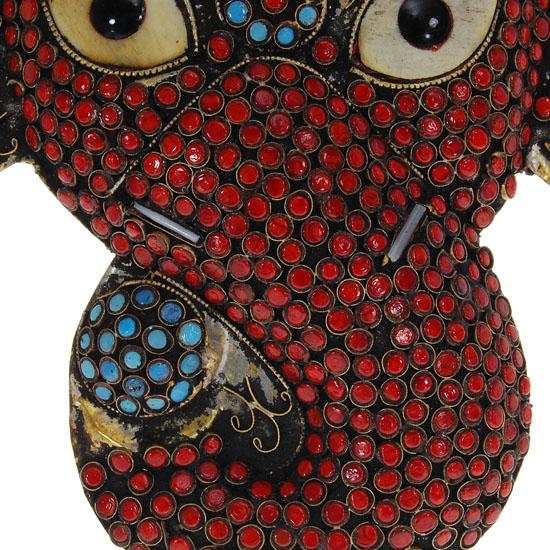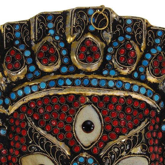 Brass mask adorned with semi-precious stones, 10"