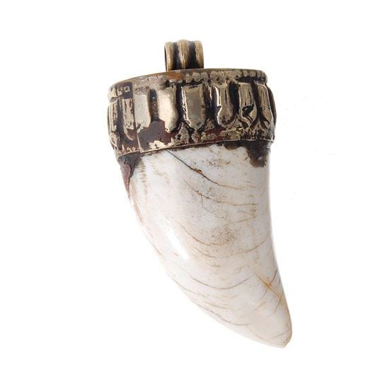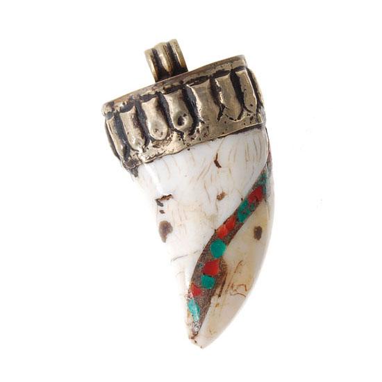Excellent vintage Tibet piece; silvered brass hardware; 2" heavy