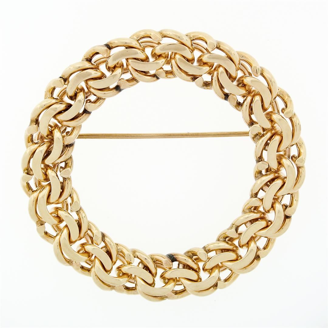 A vintage 14k yellow gold wreath brooch by Tiffany and Co. Measures 51mm in diameter and weighs a total of 29.12 grams.