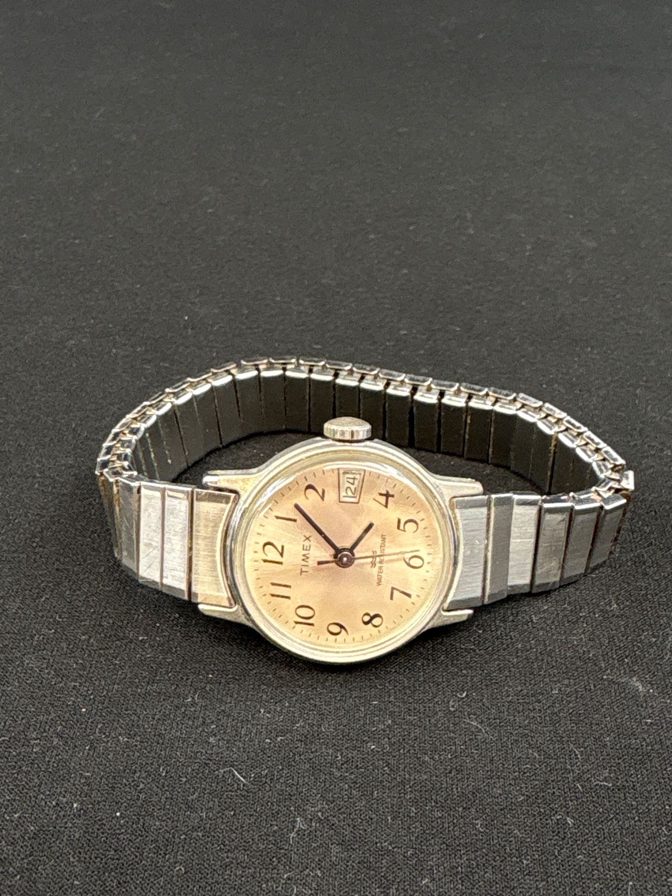 Vintage Timex Stainless Steel Back Manual Wind Up Wristwatch, Date, Water Resistant, Working + Stain