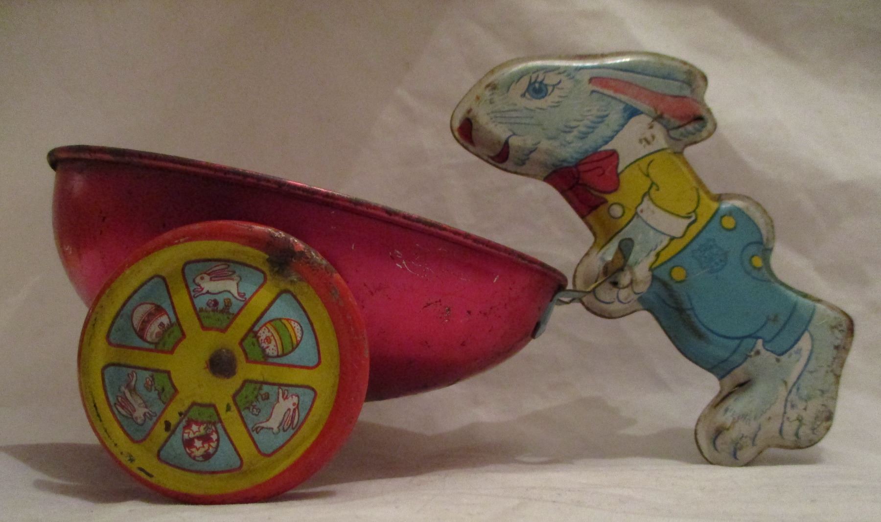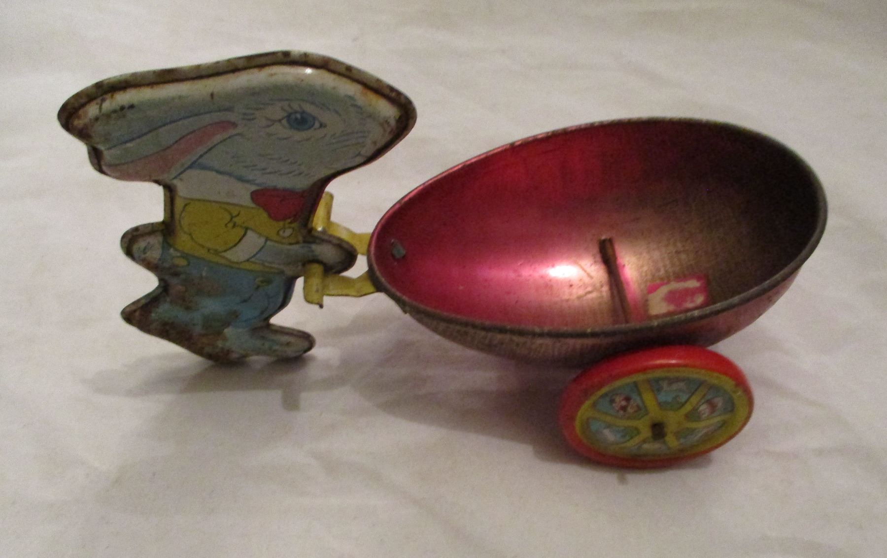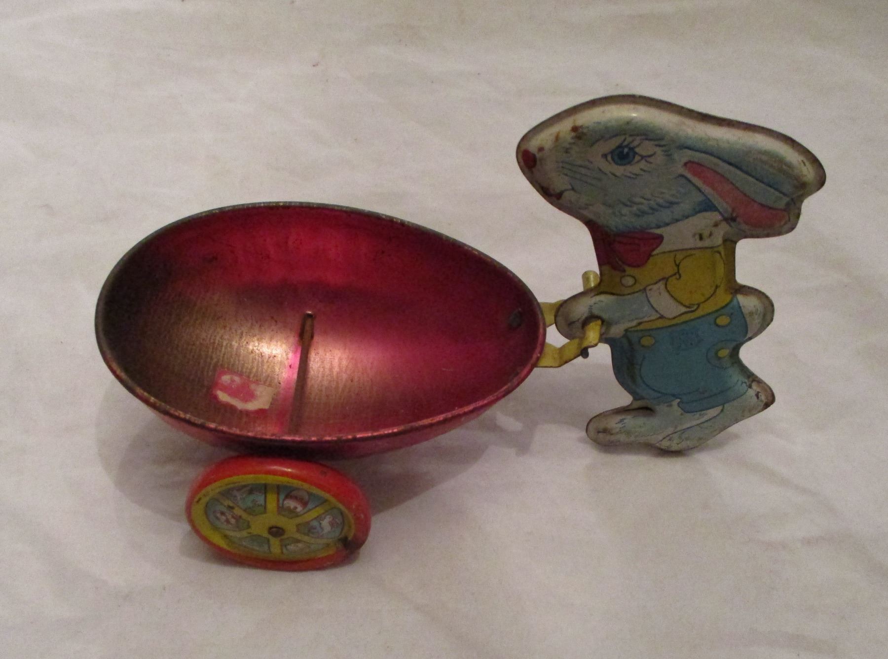 Vintage Tin Lithographed Toy Rabbit Bunny Pulling Cart Wagon Easter J Chein