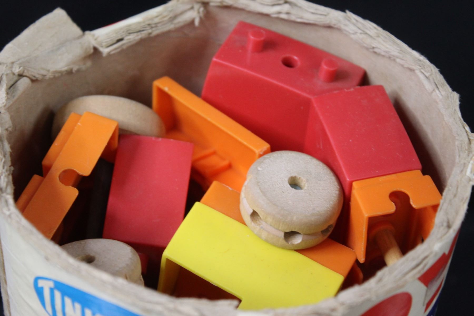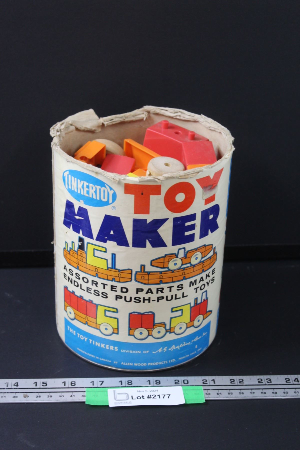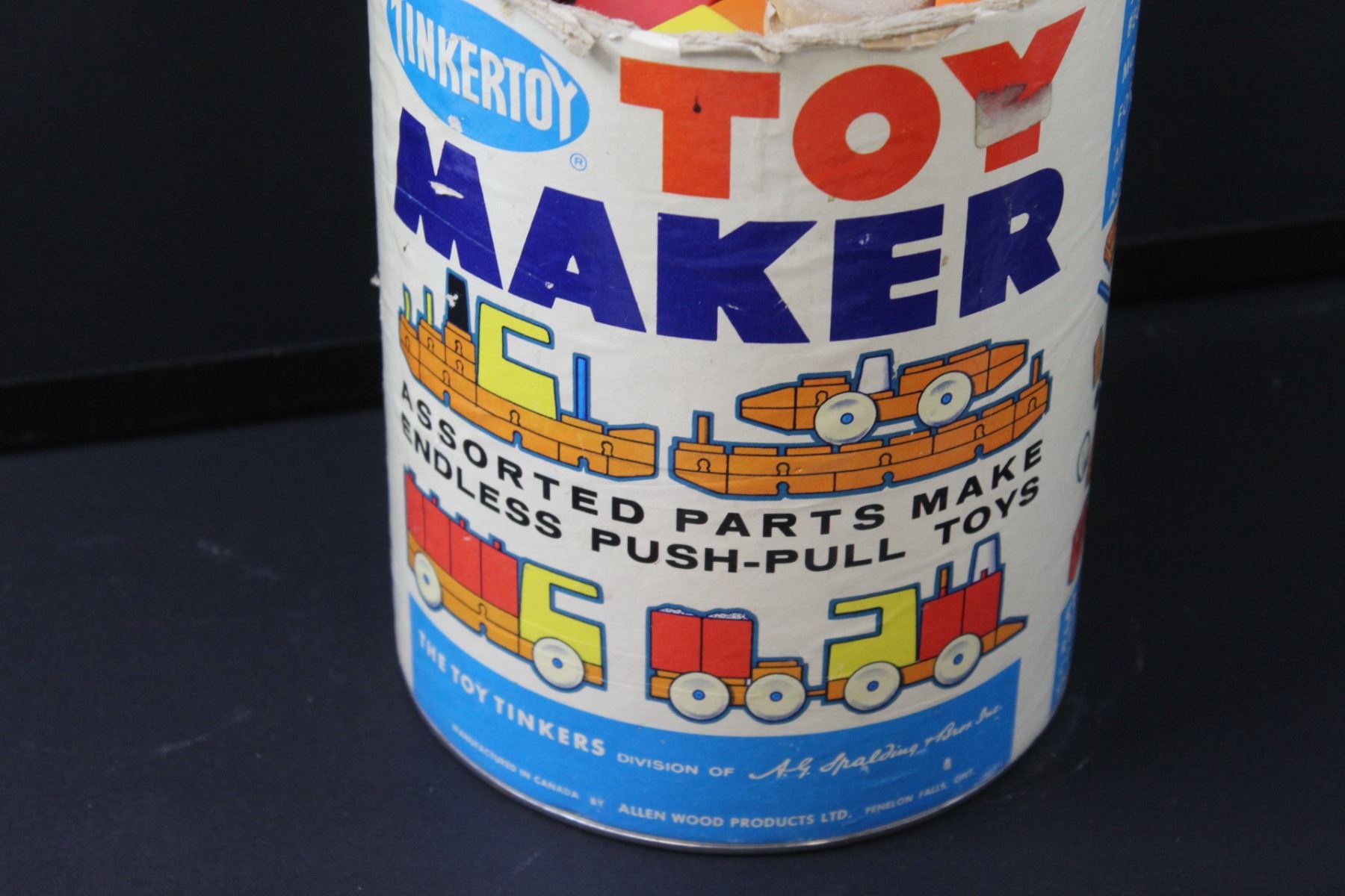 Vintage Tinkertoy Toy Maker in Container - Assorted Parts - as is