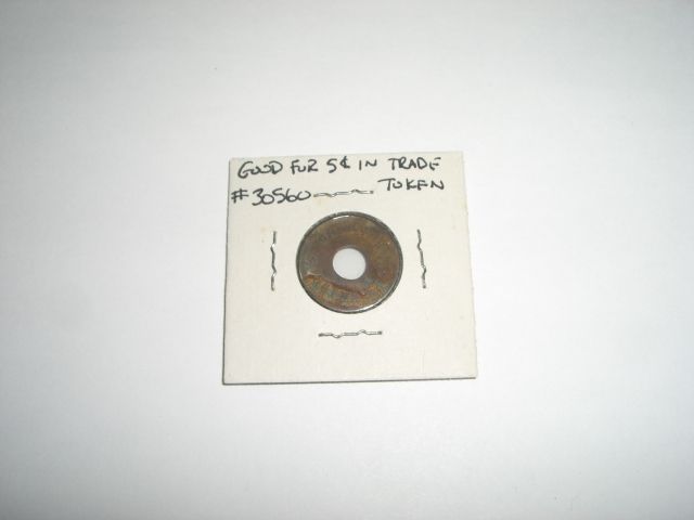 Vintage Token *GOOD FOR 5 cents IN TRADE - #30560*!! ***Coin & Currency Grades, Conditions and Values are not Northern Colorado Estate Liquidators Responsibilty. Grades, Condition and Values are determined by Consigner(s) & Buyers ONLY***