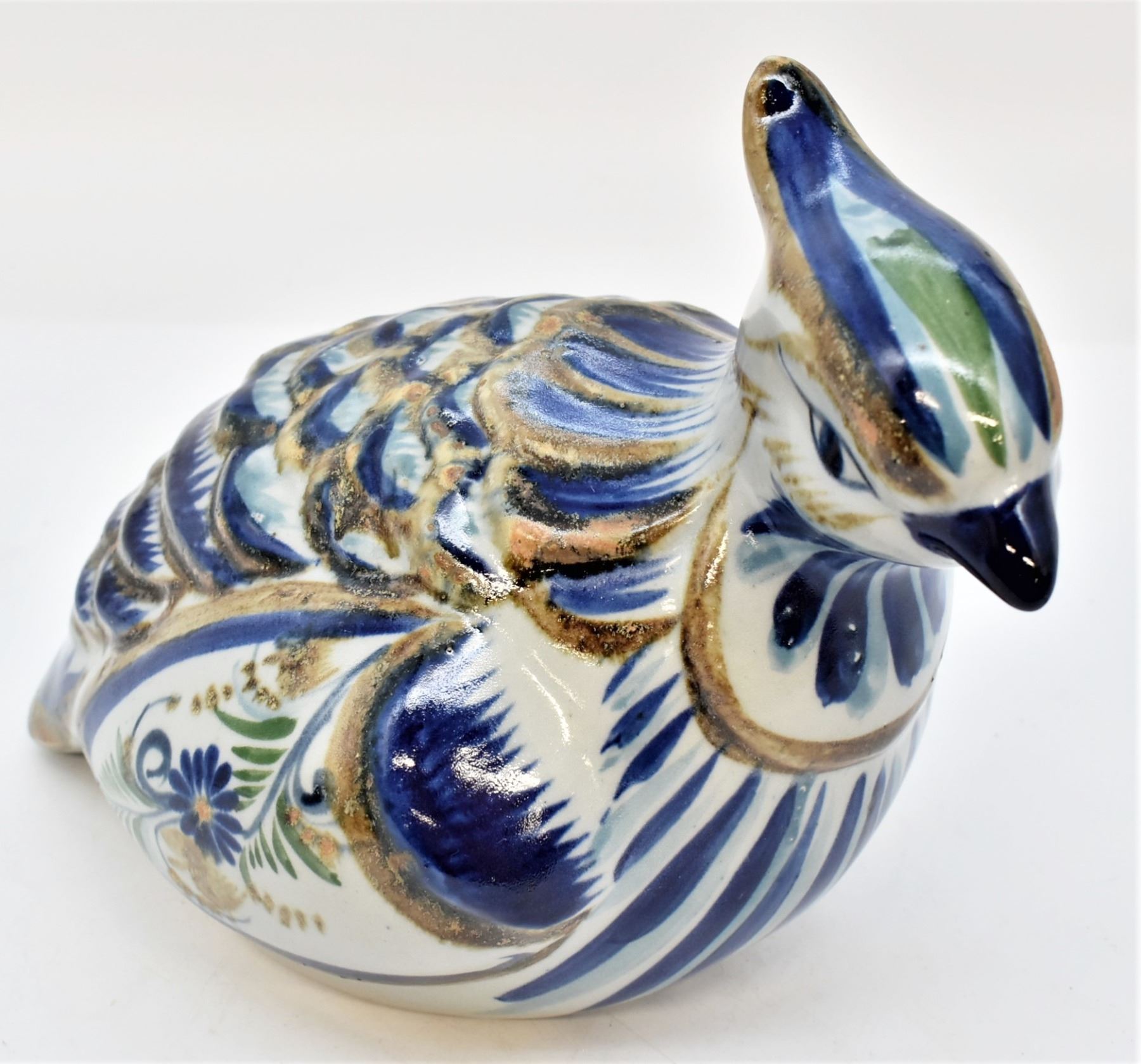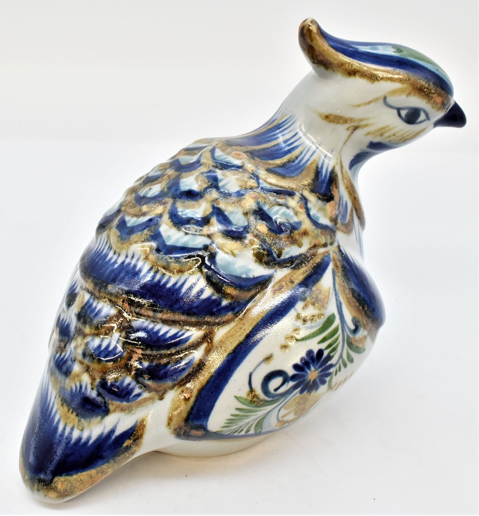 Vintage Tonala Pottery Quail, measures 9'' x 13'' and is marked, large and beautiful