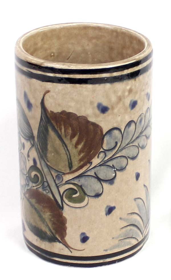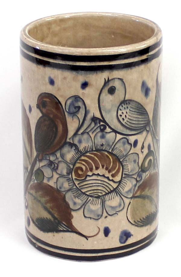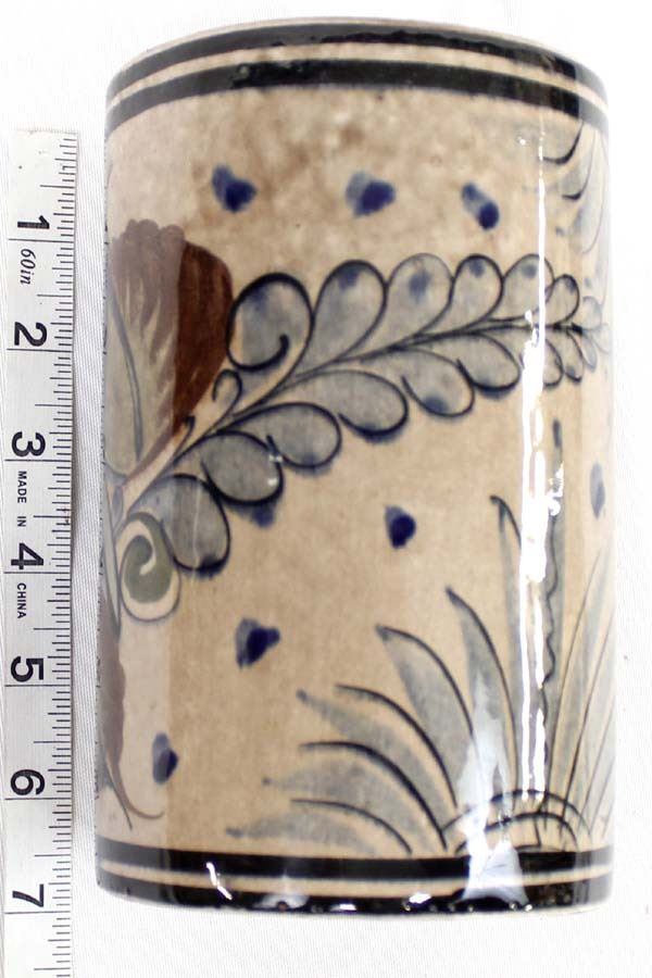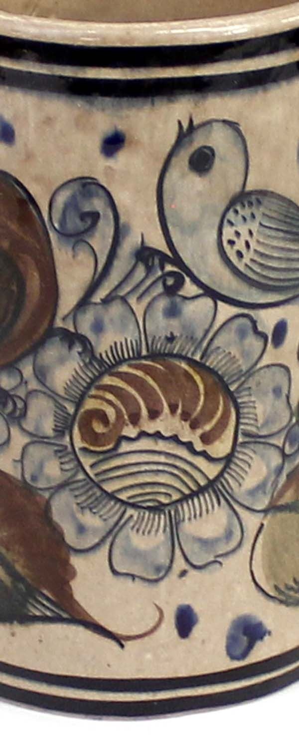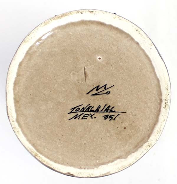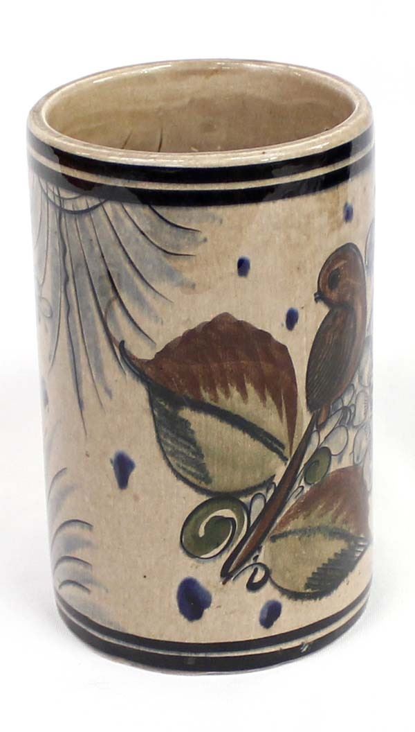Vintage Tonala Pottery Vase, measures 4''D x 7''H, marked on the bottom, beautiful bird and flower motif
